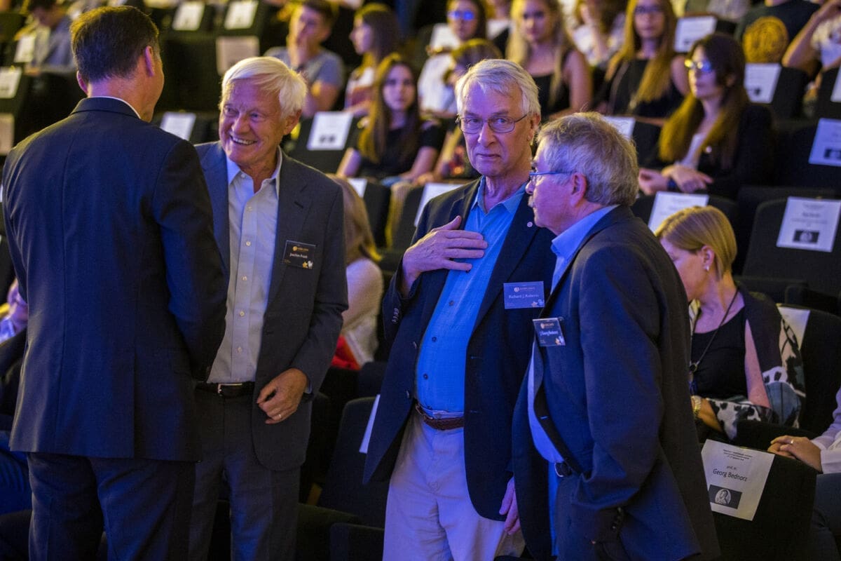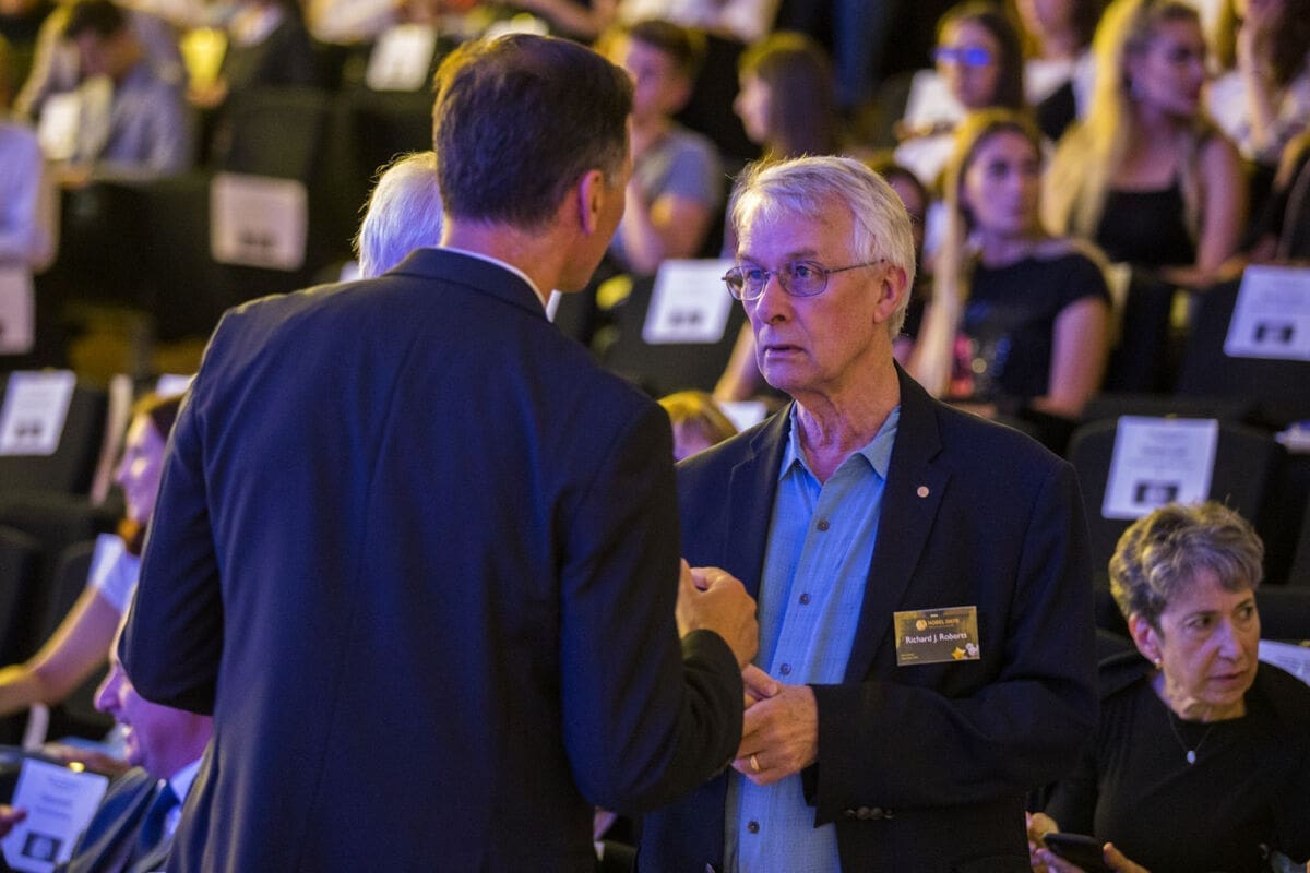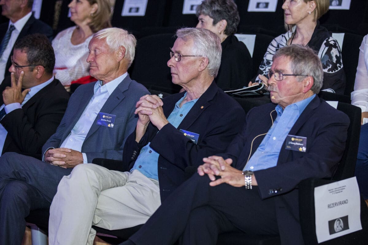 Večeras su u amfiteatru MEFST-a boravila čak tri dobitnika Nobelove nagrade: biokemičar Richard Roberts (Nobelova nagrada za medicinu 1993.), biofizičar Joachim Frank (Nobelova nagrada za kemiju 2017.) te fizičar Georg Bednorz (Nobelova nagrada za fiziku 1986.).