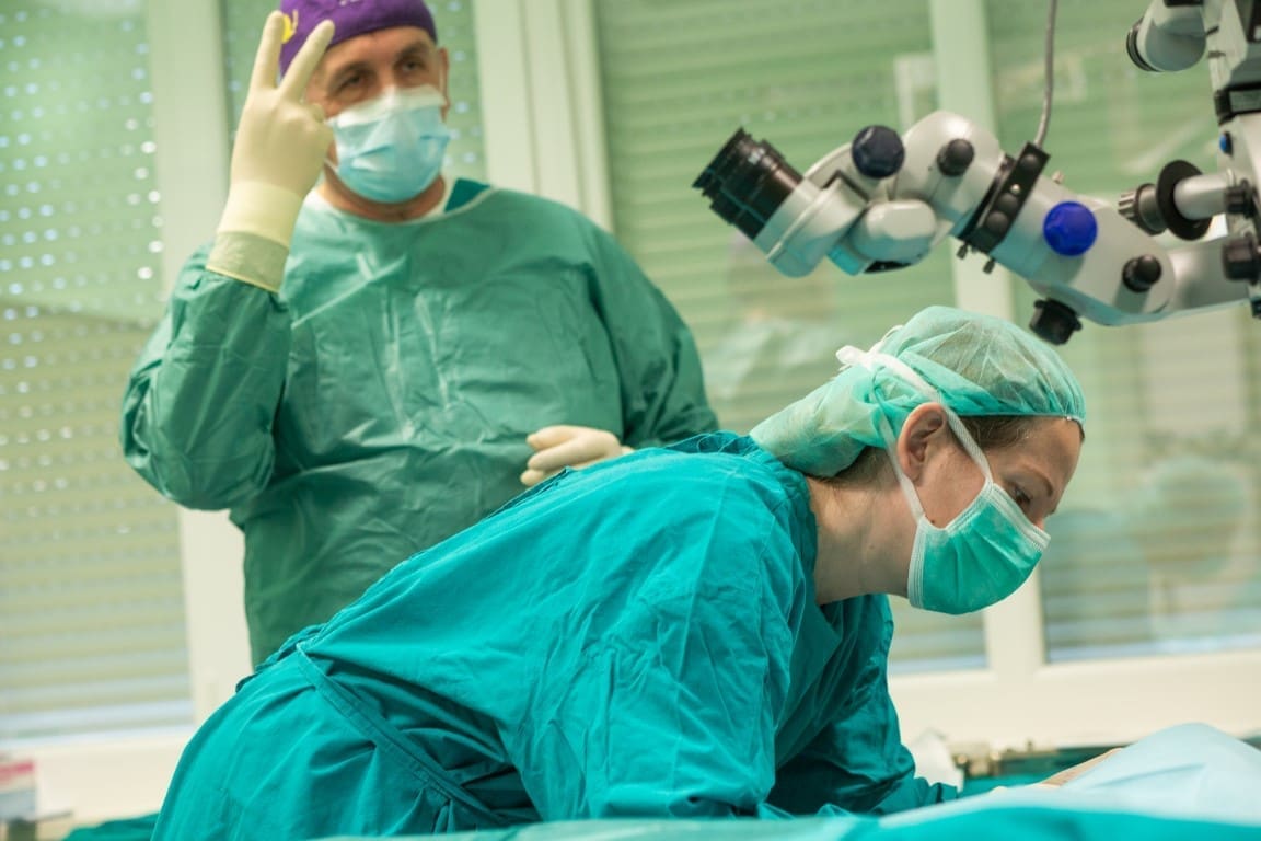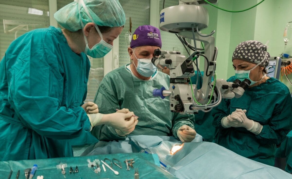 Operacijski zahvat izveli su predstojnik Klinike za očne bolesti izv. prof. Kajo Bućan, primarijus Robert Stanić, docentica Ivanka Petric Vicković, specijalistica iz KBC Sestre Milosrdnice u Zagrebu te doktorica Josipa Marin Lovrić uz pomoć ostatka tima.