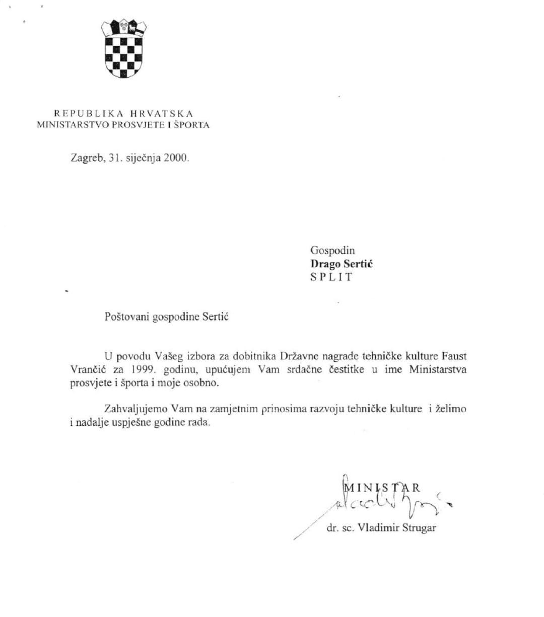 Tehnička kultura je vjerojatno dala mig da sam ja nepoželjan. Možete li zamisliti tu sramotu? Netko tko je inicirao, uložio sve što je imao, napravio to, a to je korisno i koristi se - i najedanput dobije nogu. Ne treba meni nagrada Grada Splita. Mene je Split nagradio time što mi je pomogao, to je već nagrada. Formalna nagrada nije me interesirala i nije me to toliko pogodilo, ali šta je tu je“, kaže nam za kraj Drago Sertić.