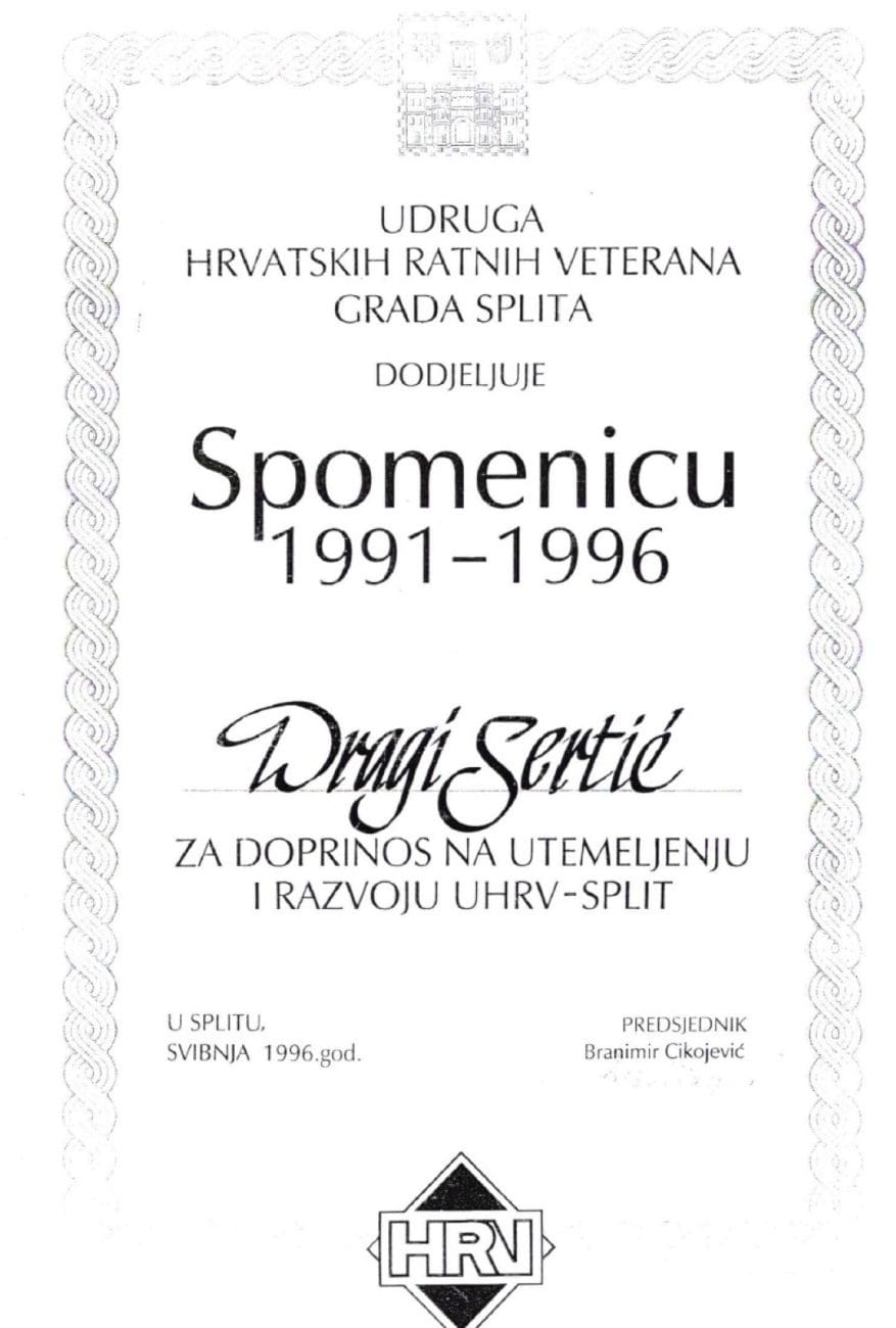 Nekoliko priznanja koje je dobio Drago Sertić i nekoliko scanova članaka iz tiskanog izdanja Slobodne Dalmacije: