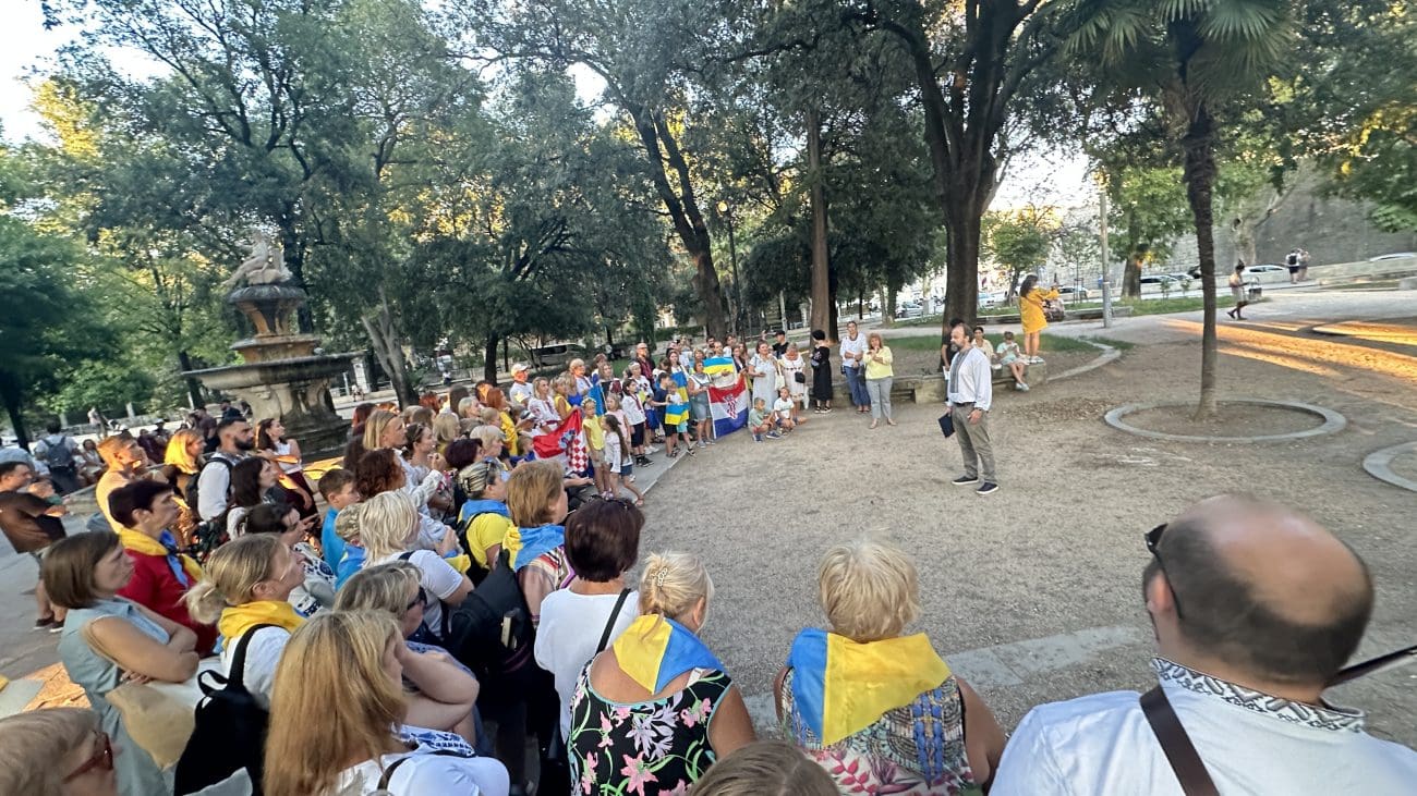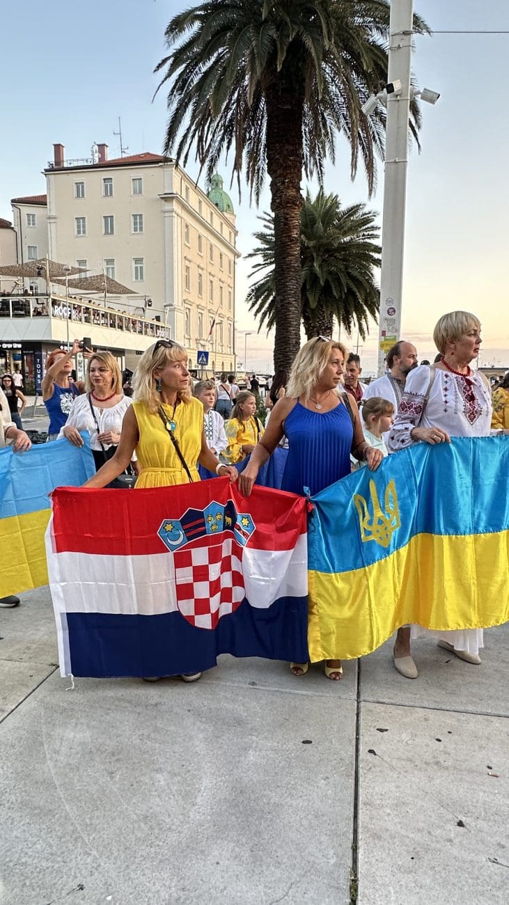 Okupljeni su šetali Rivom i u glas zapjevali ukrajinsku himnu, a pjesmi su se spontano pridružili i prolaznici. Atmosfera je bila ispunjena simbolikom jedinstva i podrške, uz poruke snage i nade u pobjedu.
