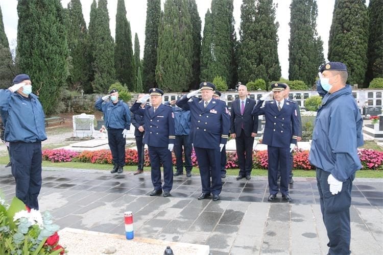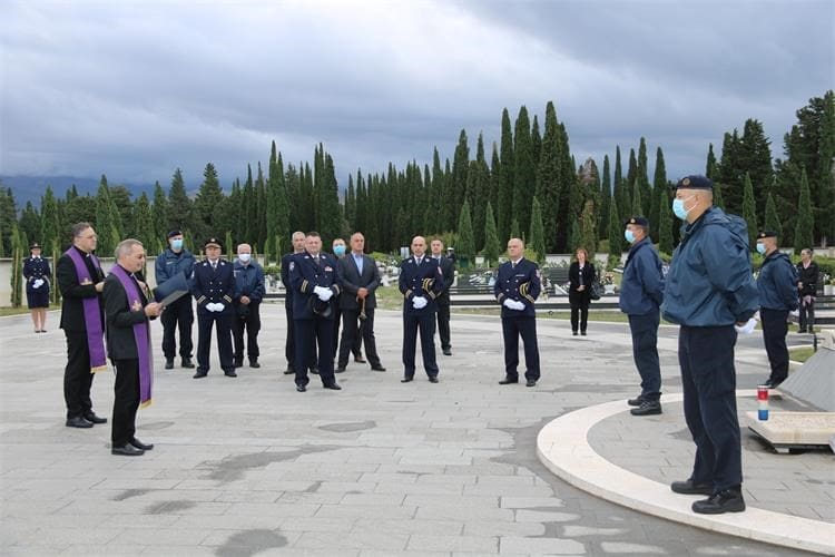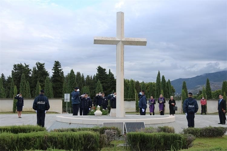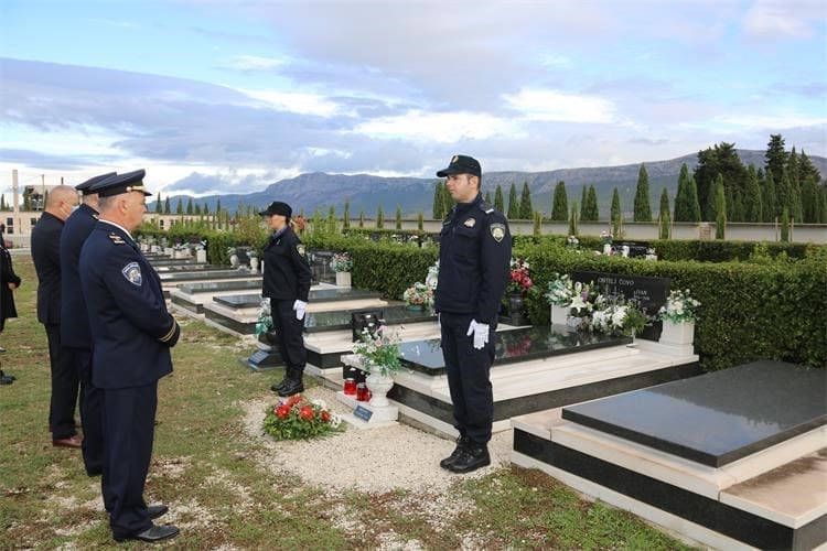 Svečano obilježavanje počelo je polaganjem vijenaca na centralnom križu i groblju branitelja na gradskom groblju Lovrinac. Načelnik Dražen Vitez predvodio je izaslanstvo koje je, uz nazočnost članova obitelji, položilo cvijeće na grobove poginulih i preminulih kolega čije posljednje počivalište je na Lovrincu. U znak sjećanja na naše poginule kolege, načelnik Vitez položio je cvijeće i upalio svijeću ispred murala postavljenog u čast policijskih službenika poginulih u Domovinskom ratu.