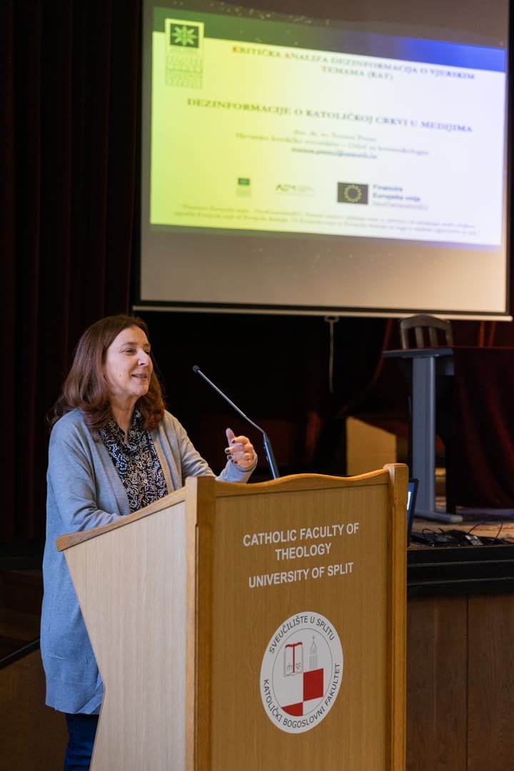 Drugo predavanje nosilo je naslov "Dezinformacije o Katoličkoj Crkvi u medijima", a održala ga je doc. dr. sc. Suzana Peran. U njemu je pojasnila kako se u Katoličkoj Crkvi još od dokumenta "Communio et progressio" iz 1971. govori o važnosti ispravnog, istinitog informiranja te o odgoju za medije koji bi se trebao događati u župama, katoličkim školama i biskupijama. O dezinformacijama, ili kako se one popularno nazivaju lažnim vijestima, više se govori od 2018. nakon Papine poruke "Istina će vas osloboditi" o novinarstvu mira i lažnim porukama. Na tom tragu krenule su brojne inicijative u raznim biskupijama svijeta gdje se provjerava točnost informacija, ali i poučava vjernike, a posebno katoličke novinare koji su pozvani širiti istinite informacije, učinkovitom prepoznavanju dezinformacija. Nadalje, dezinformacije o vjerskim temama u cijelom se svijetu posebno dijele na društvenim mrežama gdje su često prisutne u naslovima. Razlog širenja ovih dezinformacija, naročito u političkim izborima, je taj što je vjera dio identiteta pojedinca te se na taj način udara na emocije, pojašnjava predavačica. Jako je važno boriti se protiv dezinformacija jer se njima može počiniti konkretna šteta osobama, ali i jer se na taj način stvara nepovjerenje i u Crkvu i u društvo.