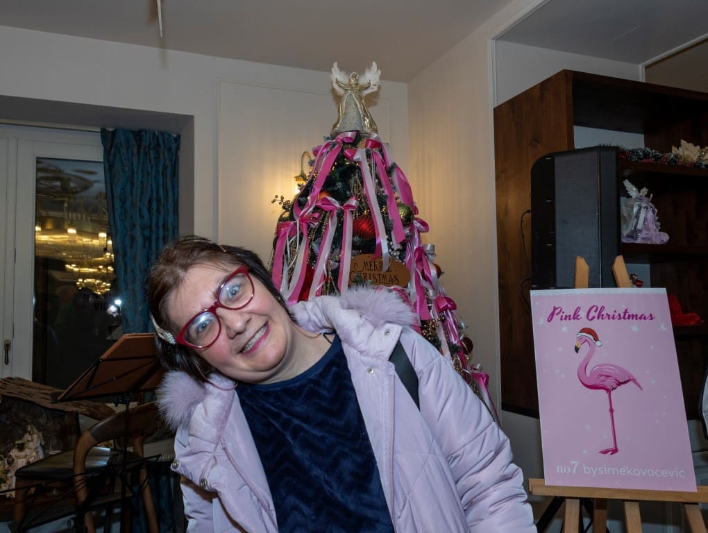 Kolekcija "Pink Christmas", odnosno "Ružičasti Božić" na jedinstven način slavi ljepotu i vrijednost ovozemaljskog života. Marina Fernandez izjavila je kako je predivan osjećaj nositi ovu reviju, biti dio te priče koja je posvećena osobi čiji rođendan slavimo i koja je potaknula cijelu priču. Šime, pak, dodaje kako život treba biti šaren te da je njegova želja bila i da nas u ove zimske dane izvuče iz depresije u koju zapadnemo čim zapuše bura. Pink flamingo, nježni detalj – simbol ove revije upravo je zato i bio tu da nam vrati osjećaj ljetne sreće.