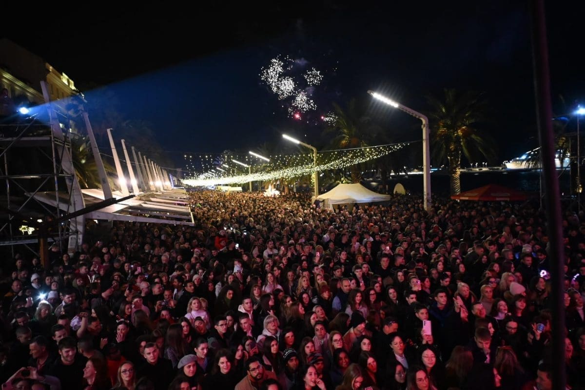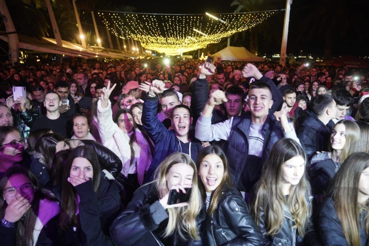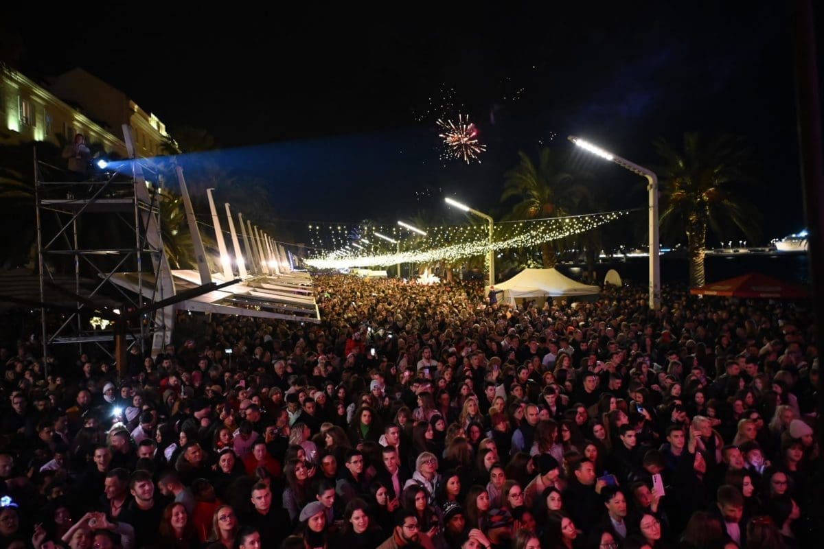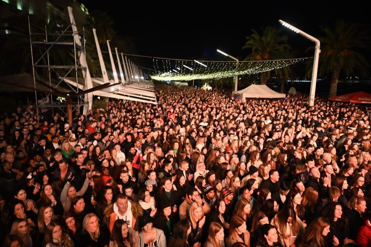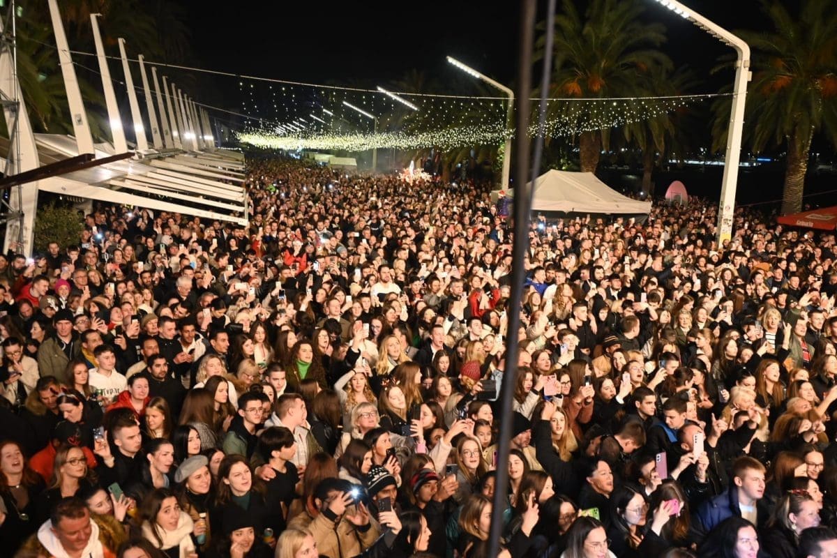 Tisuće ljudi na splitskoj Rivi uživaju u novogodišnjem koncertu koji je oko 21:30 otvorio mega popularni triljski reper Grše. Iza 23 sata pozornicu na Rivi ustupio je divi domaće glazbene estrade, Doris Dragović.