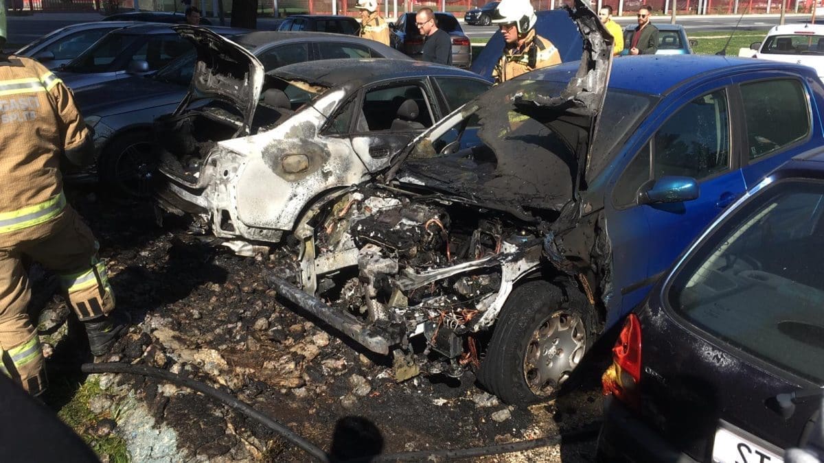 Vatra je zahvatila i automobile koji su bili parkirani pored o čemu svjedoči i ova fotografija koju nam je poslao naš čitatelj. Oštećeni su Mercedes, Audi i Peugeot.