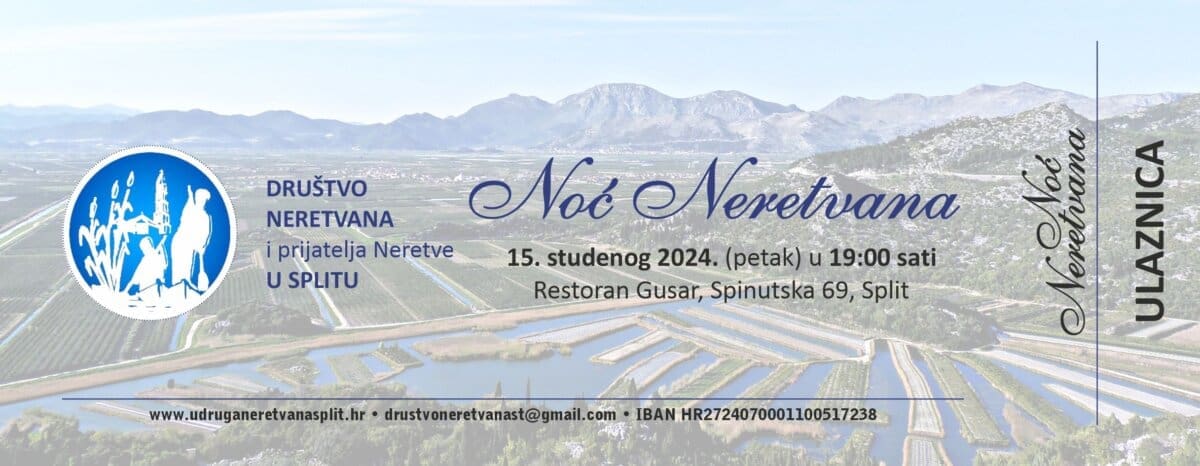 Društvo Neretvana i prijatelja Neretve u Splitu poziva sve svoje članove i drage prijatelje kao i sve zainteresirane da im se pridruže na tradicionalnoj 8. Noći Neretvana koja će se održati u petak, 15. studenog u restoranu Gusar u Splitu.
