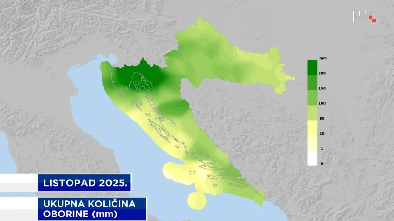 Podjednake, ponegdje i veće ocjene od rujna zaslužuje dosadašnji "temperaturni" dio 2025. godine. Srednja temperatura zraka od 1. siječnja do 31. listopada u većini Hrvatske je među 5 najviših otkad postoje mjerenja. Nije rekordno visoka kao prošle godine, ali je u Splitu odmah iza nje, dok je u primjerice Osijeku, Zagrebu, Gospiću i na Zavižanu 3. na popisu najviših, a u Dubrovniku i Rijeci 4. najviša. Osim prošle godine, toplije od ovogodišnjih prvih deset mjeseci bilo je često 2023., ponegdje i 2022. ili 2018. godine.