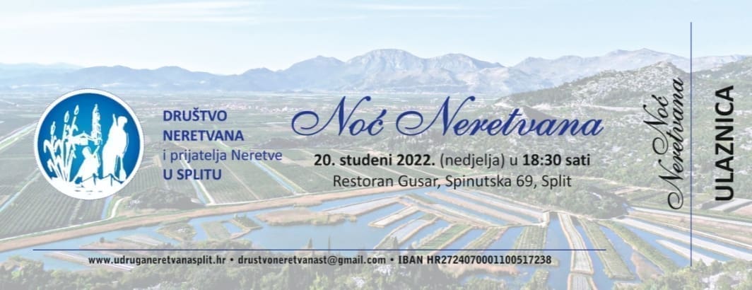 Društvo Neretvana i prijatelja Neretve u Splitu poziva sve svoje članove i drage prijatelje kao i sve zainteresirane da se pridruže na tradicionalnoj 6. Noći Neretvana koja će se održati u nedjelju, 20. studenog u restoranu Gusar u Splitu.