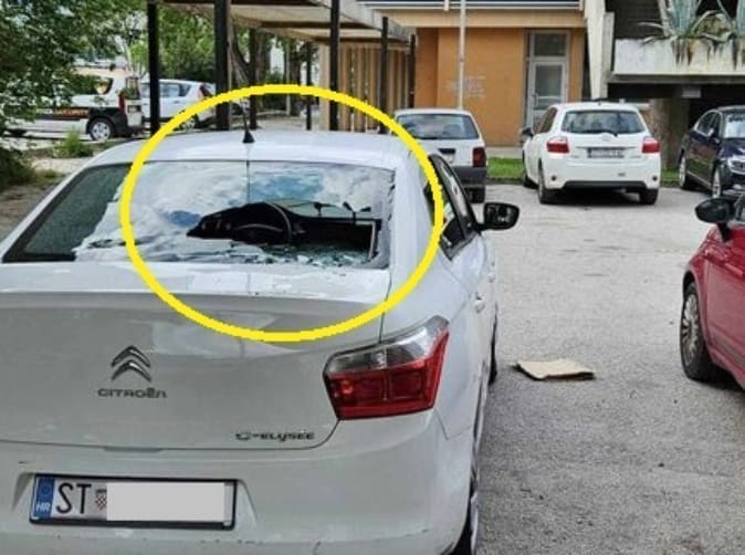 Naime, sa zgrade jedne splitske školske poliklinike otpala je fasada i oštetila parirani automobil. Kao što se na fotografiji može vidjeti, fasada je 'probila' staklo osobnog vozila i prouzročila materijalnu štetu.