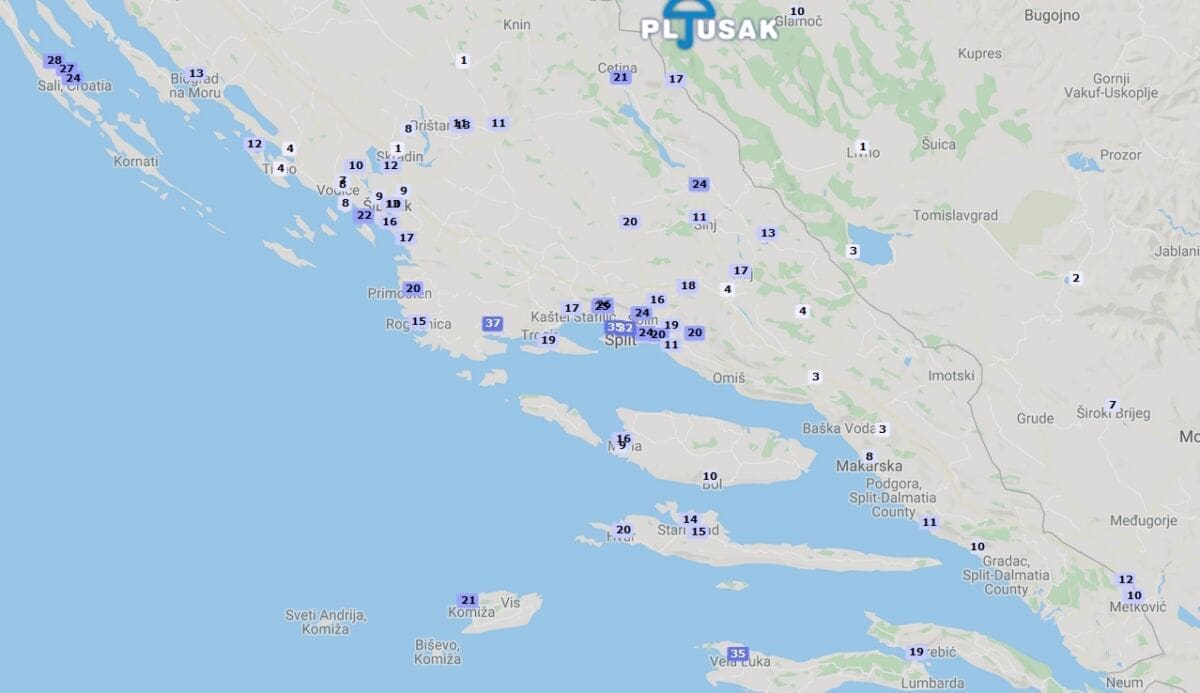 Starigrad Paklenica 54, Molunat 50, Molat 43, Split (Spinut) i Seline - Mala Paklenica 40, Poljica - Marina 38, Župa Dubrovačka 37, Vela Luka 36, Split (Gripe) 36 itd.