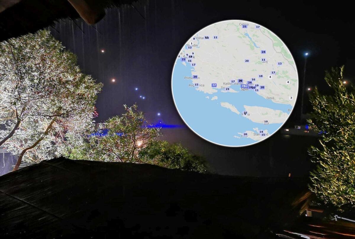 S pljuskovima je osvježilo pa je iza 23 sata temperatura zraka u Splitu pala na 17°C.