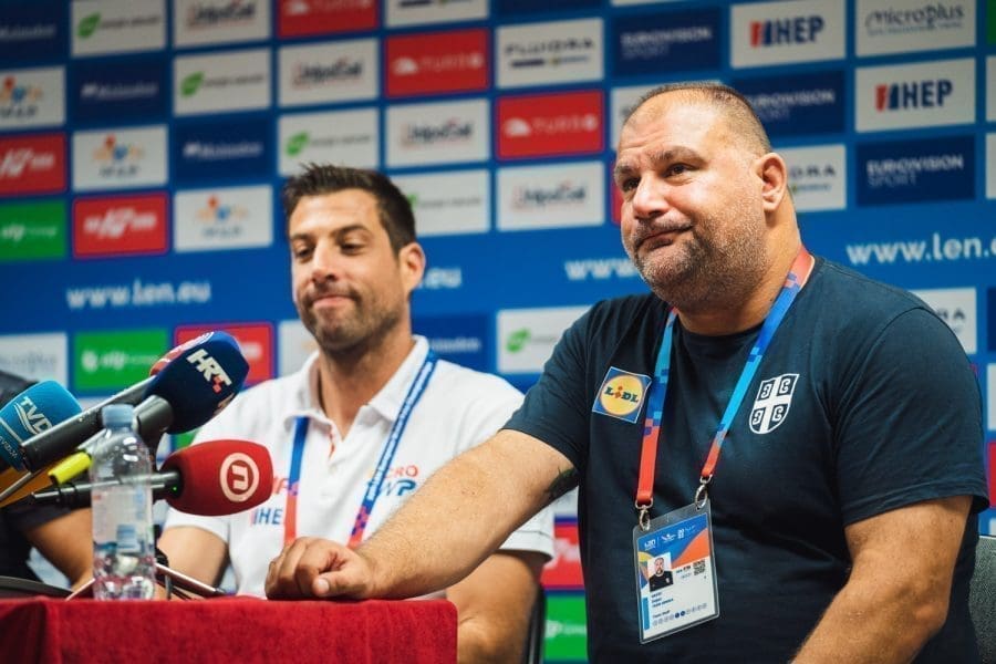 "Izuzetna mi je čast i zadovoljstvo što sam ispred vas, zdrav i čitav. Reprezentacija Srbije ulazi u novom sastavu, čak i u odnosu na Svjetsko prvenstvo. Poslije Olimpijskih igara moram reći da smo mi, uz Hrvatsku, reprezentacija koja je pretrpjela najviše promjena, s tim što za ovo Europsko prvenstvo imamo i određene pehove, mislim na povrede. To neće utjecati na tradiciju srpskog vaterpola odnosno na naše ciljeve, a to je osvajanje medalje. Možda će ovo zvučati preambiciozno ili prepotentno, pogotovo ljudima iz Srbije, poznavajući splet okolnosti odnosno ekipu, ali moja uloga ovdje je da branim boje Srbije odnosno tradiciju srpskog vaterpola. Reprezentacija Srbije sigurno pretendira na jednu od medalja", kazao je Savić te pohvalio ambijent, ali i organizaciju. Također je otkrio da su u Spaladiumu odigrali prijateljsku utakmicu s Hrvatskom.