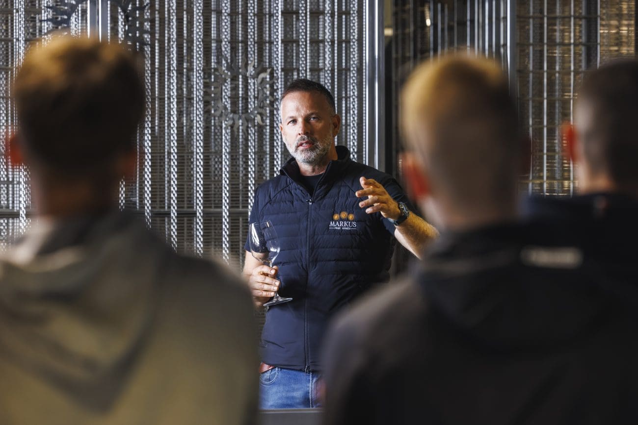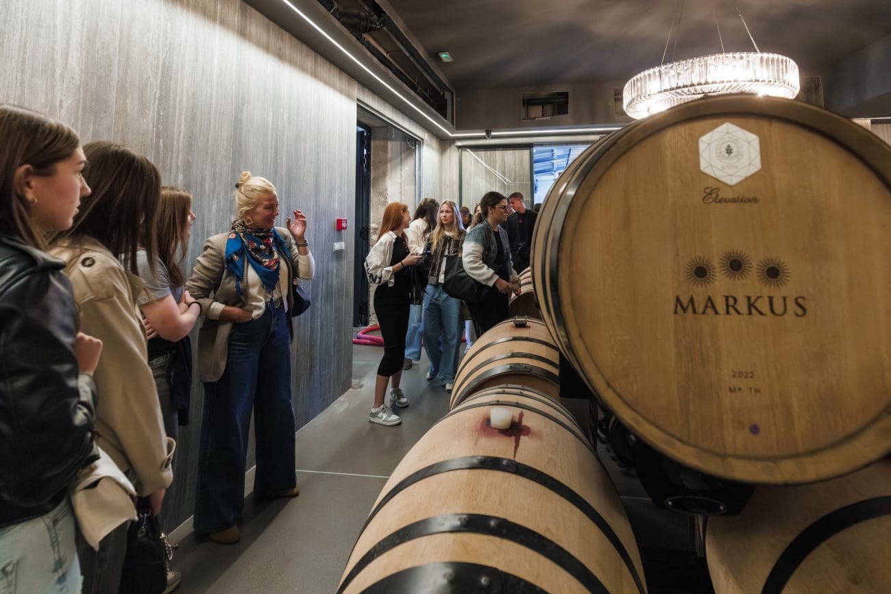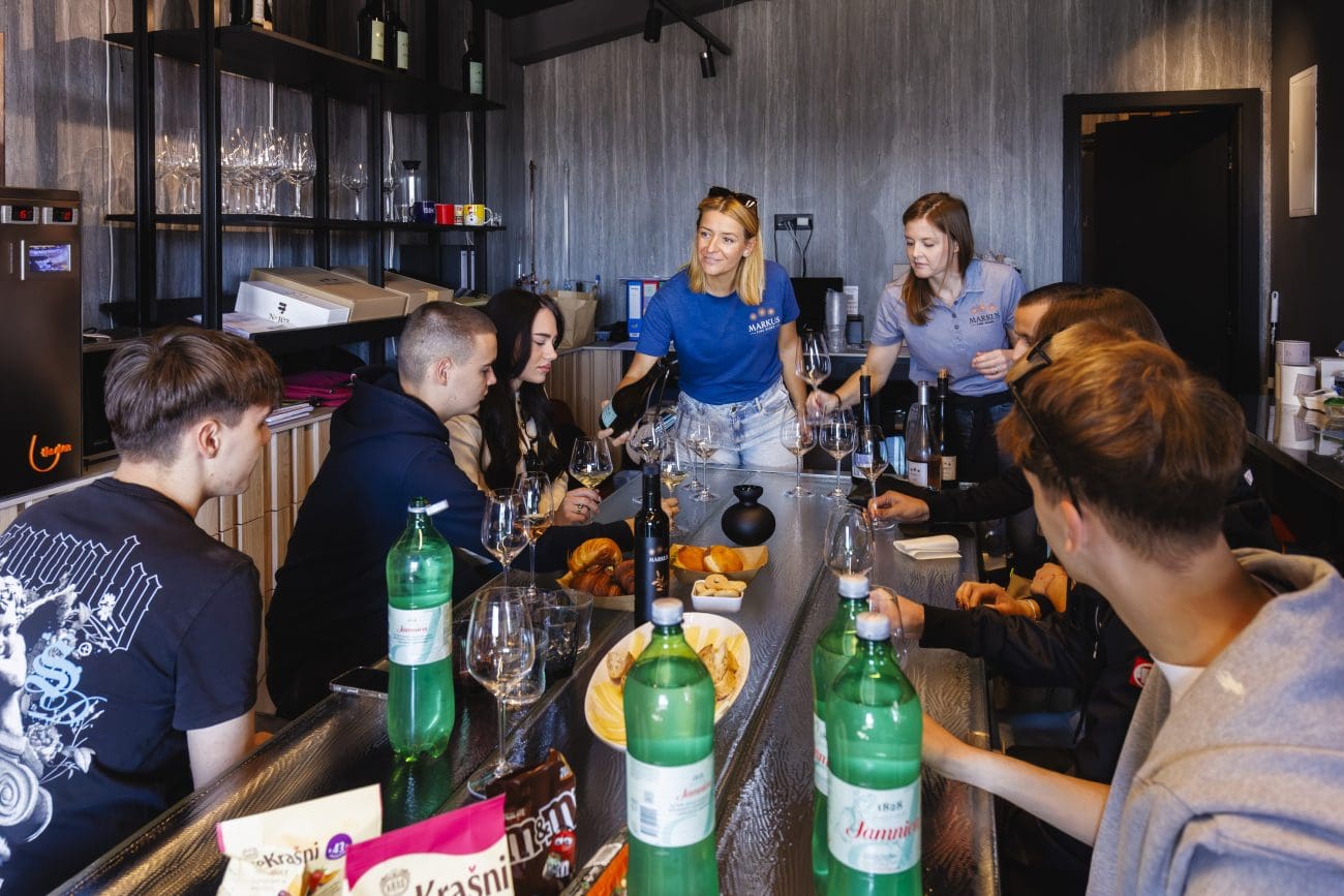 U vinariji su ih ugostili zaposlenica vinarije Ema Rakuljić te Ivona i Slaven Jeličić, bračni par enologa koji zajedno vode Markus Fine Wines. Njihova radionica o enologiji pružila je učenicima uvid u to kako grožđe postaje vino, kako terroir utječe na karakter i kvalitetu, te kako se u boji, mirisu i teksturi može pročitati priča o zemlji i vremenu. Punoljetni učenici imali su priliku i kušati vina – ne radi degustacije u klasičnom smislu, nego kako bi razumjeli što vino doista jest.
