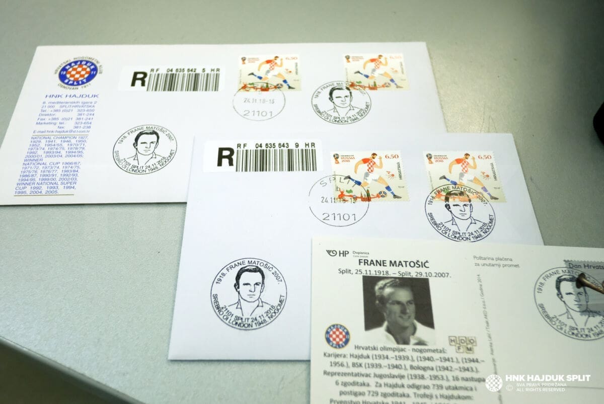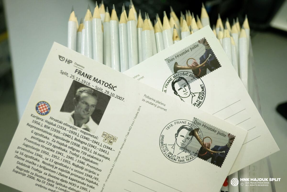 U povodu 100. godina od rođenja Frana Matošića, legendarnog nogometaša Hajduka i osvajača srebrne medalje na Olimpijskim igrama 1948. godine u Londonu, u organizaciji Hrvatske pošte i HNK Hajduk, izdana je prigodna dopisnica s Matošićevom fotografijom i kratkom biografijom te poštanski žig.