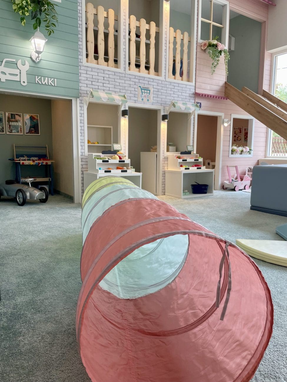 Djeca mogu uživati u jedinstvenom iskustvu tematskih kućica, kutku za fotografiranje i brojnim igrama koje potiču kreativnost. Roditelji imaju svoj stol i prostor za druženje, mogu popiti kavu iz aparata, a na raspolaganju im je i kuhinjica s hladnjakom za pohranu hrane i pića. Posebnu pažnju posvetili su udobnosti i praktičnosti – prostor ima potpuno opremljen zahod s prematalicom i pelenama, tako da roditelji ne moraju brinuti ni o sitnicama.