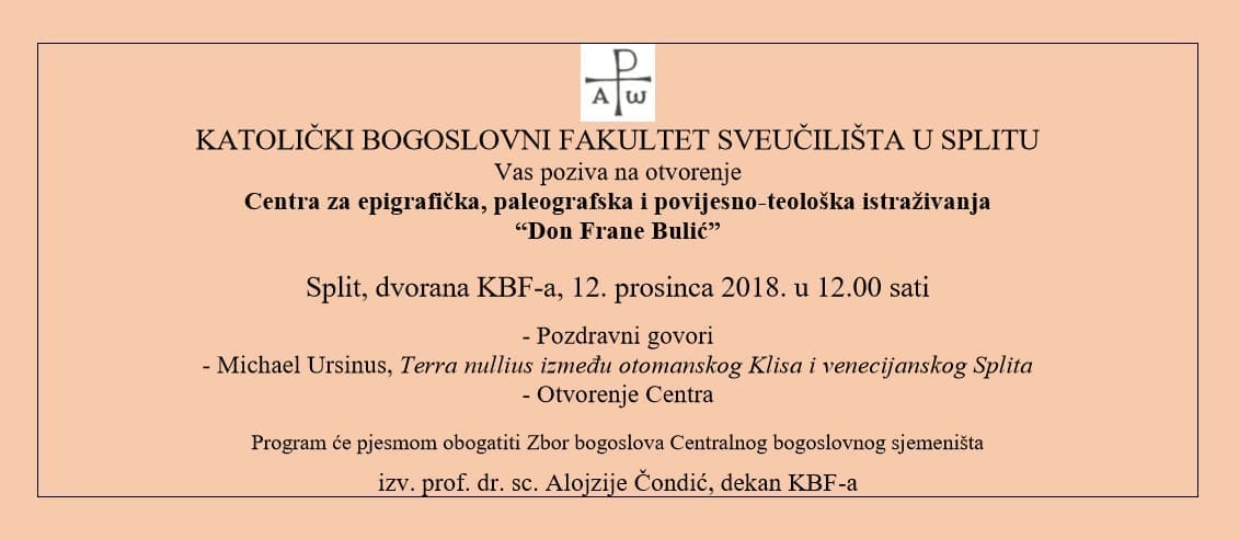 Sutra se u dvorani KBF-a Split u 12 sati svečano otvara Centar za epigrafička, paleografska i povijesno-teološka istraživanja “Don Frane Bulić”.
