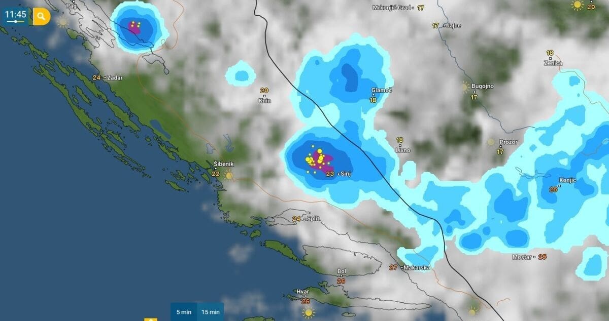 U kasnim jutarnjim satima zapadnije od Sinja razvio se olujni kumulonimbus, ali je sredinom dana postupno oslabio.