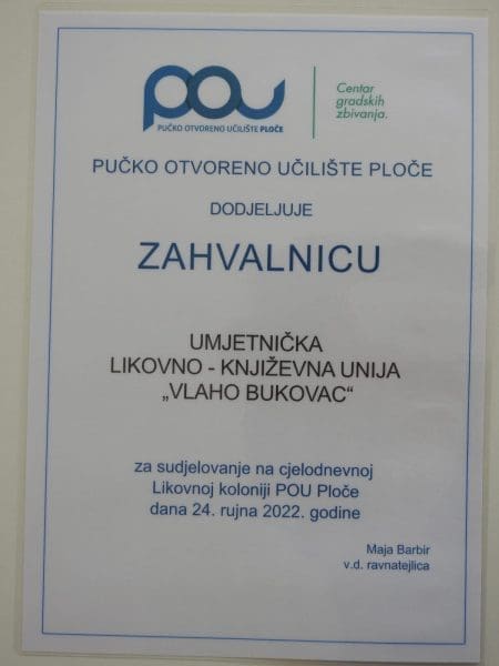 "Pozivamo sve slikare, profesionalce i amatere da se pridruže, ponesu svoj pribor i platno i uživaju u cjelodnevnom druženju sa članovima ULKU Vlaho Bukovac. Hrana i piće osigurani", pozvali su sve zainteresirane iz Pučkog otvorenog učilišta Ploče.