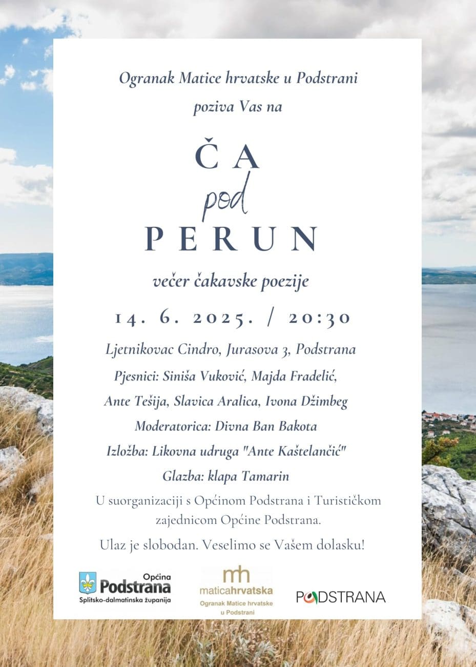 U subotu 14. lipnja s početkom u 20:30 održat će se 16. tradicionalna večer čakavske poezije Ča pod Perun.