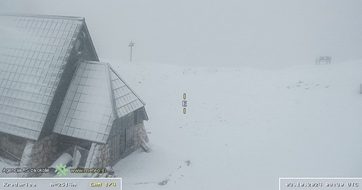 Nadzorne kamere zabilježile snježne prizore na Kredarici, slovenskoj planini visokoj 2515 metara. I u nastavku dana i tijekom petka očekuje se podebljavanje snježnog pokrivača na slovenskim planinama.