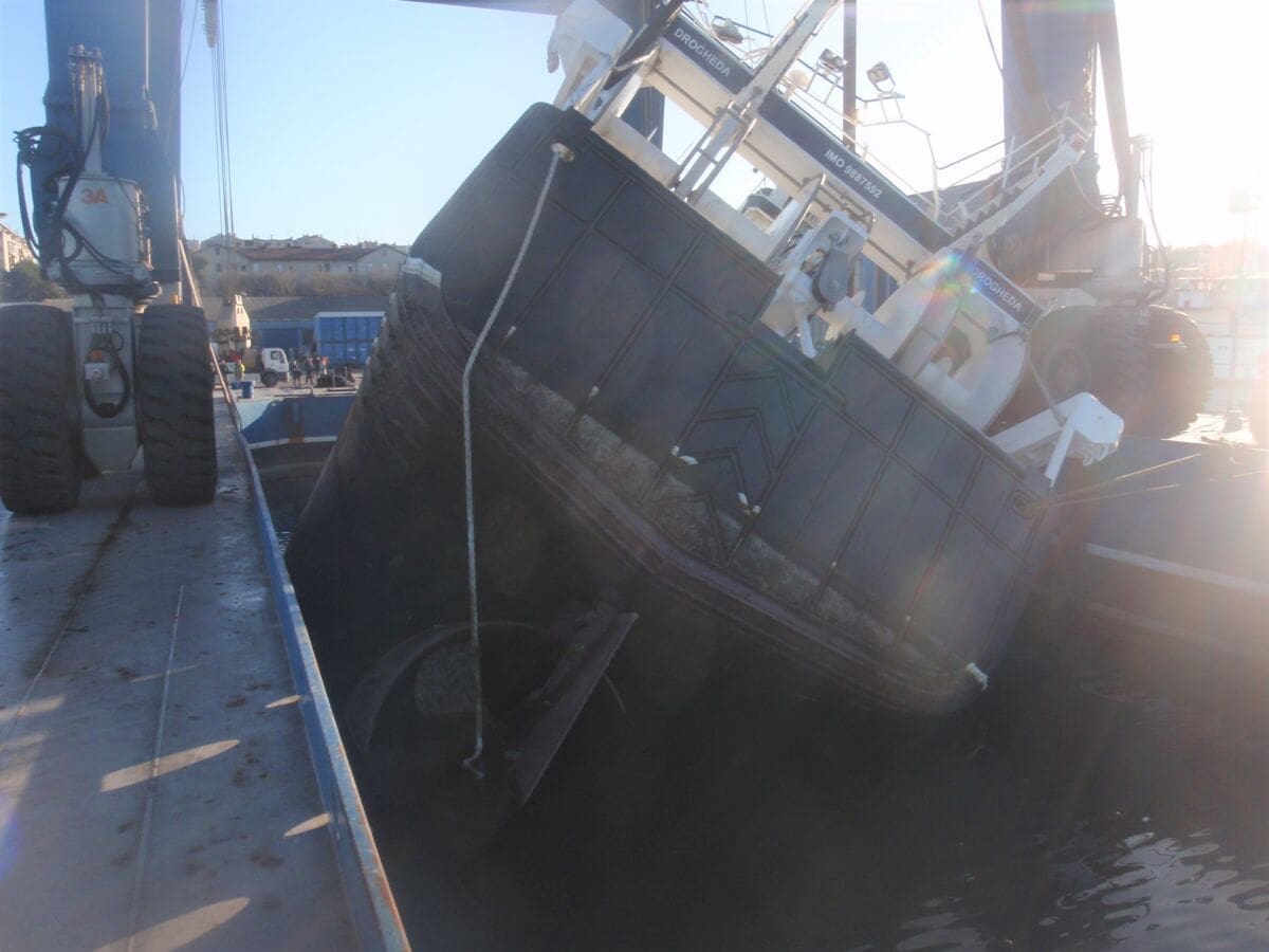 Tijekom jučer pokrenutog postupka podizanja novogradnje ribarskoga broda pomoću prijevozne lučke dizalice, puknula je čelik čelo podizna traka te je novogradnja ispala iz nosača, pri čemu je pramčani dio potopljen u moru, dok je krmeni dio ostao pričvršćen na dizalicu. Nažalost, tijekom noći novogradnja je u potpunosti ispala sa dizalice te je potopljena uz obalni zid pulske luke. U ovoj nesreći nema stradalih niti ozlijeđenih, a trenutno su u tijeku pripreme za vađenje novogradnje iz mora.