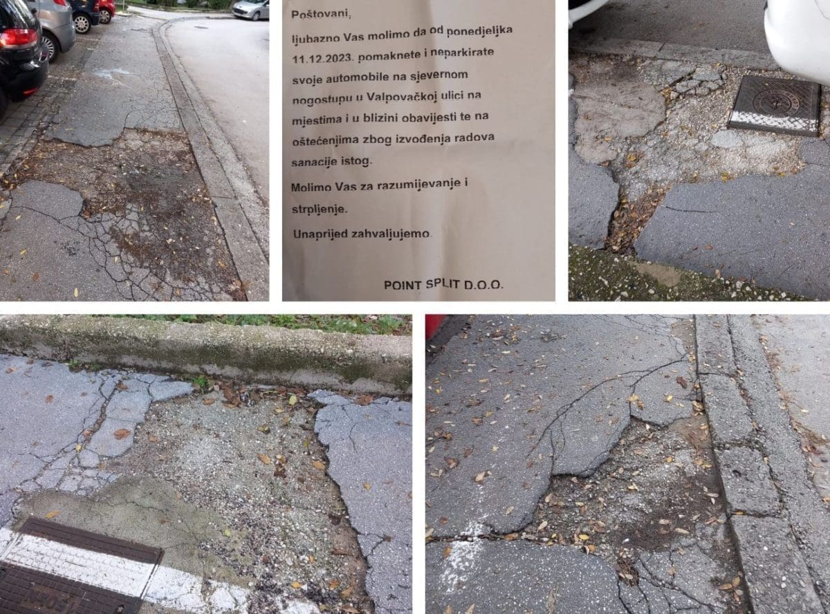 Naime, izvođači radova su zamolili stanovnike da pomaknu i ne parkiraju svoje automobile na sjevernom nogostupu u Valpovačkoj ulici na oštećenim dijelovima ceste zbog sanacije.