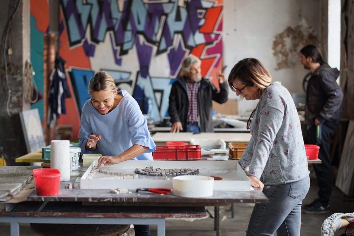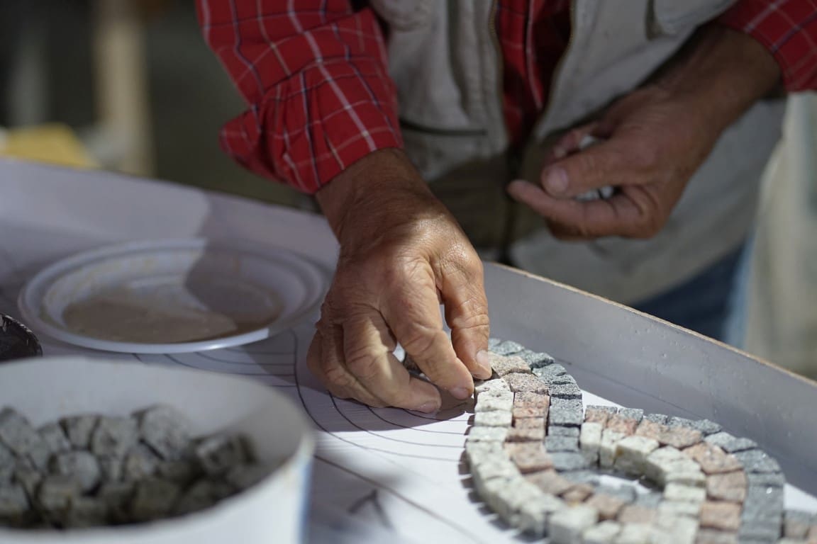 U izradi sudjeluju Velolučani i posjetitelja iz svih krajeva svijeta; njih skoro tisuću ostavili su svoj jedinstveni trag u veloluškom mozaiku. Svima njima organizatori su pružili alate, materijal i edukaciju pri izradi mozaika.