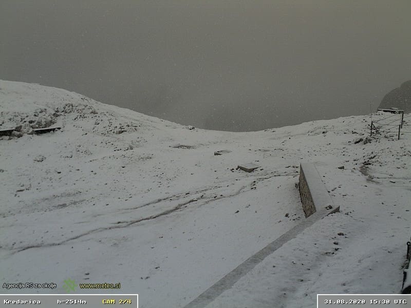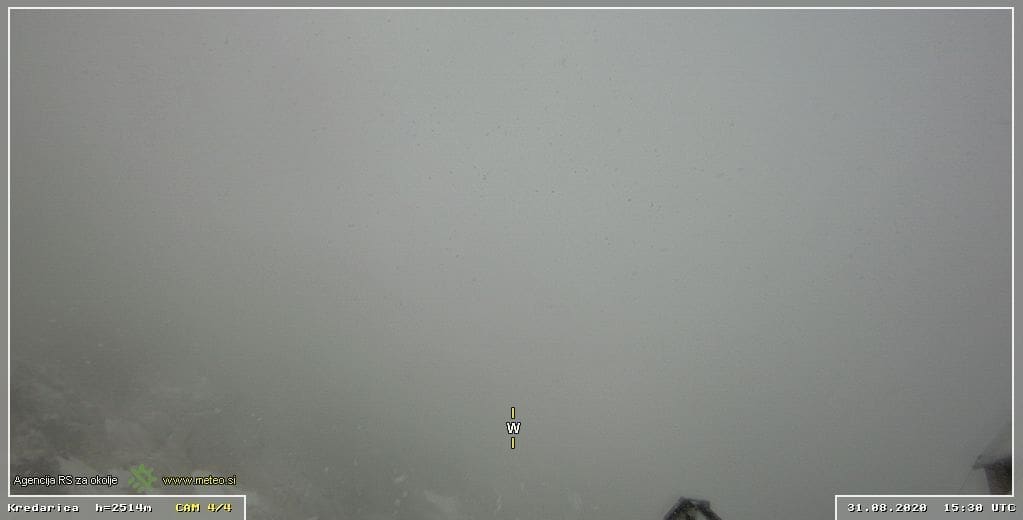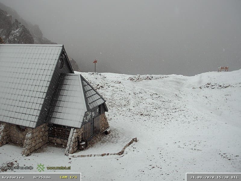 U najvišim planinama Slovenije kiša je prešla u snijeg. Na Kredarici je poslijepodne izmjereno 0°C, a palo je i nekoliko centimetara "ljetnog" snijega...