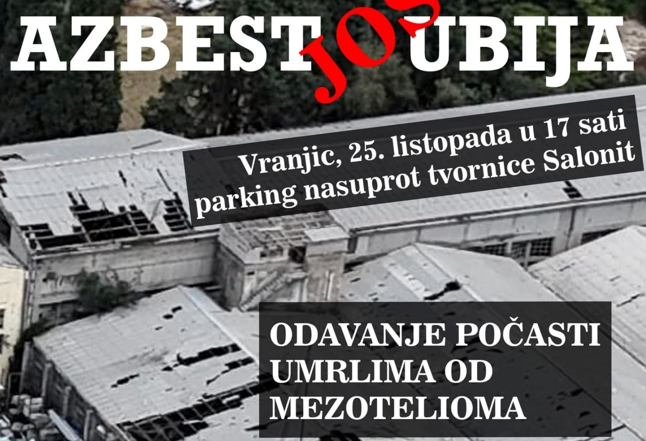 U Vranjicu se danas okupljaju građani kako bi odali počast žrtvama azbesta iz bivše tvornice Salonit, koja je desetljećima zagađivala ovo naselje nadomak Splita. Okupit će se u 17 sati na pakiralištu nasuprot igrališta, prve kapije Salonita.