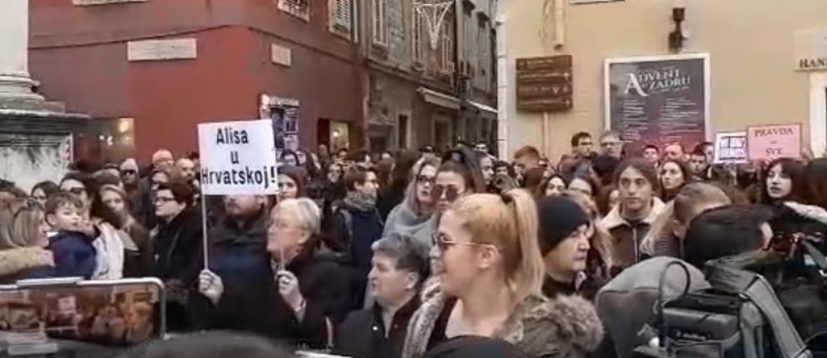 U organizaciji Građanske inicijative "Protiv pravosuđa koje štiti nasilnike" danas u 15 sati na Narodnom trgu u Zadru održan je prosvjed građanki i građana povodom brutalnog premlaćivanja djevojke koje je počinio Darko Kovačević Daruvarac.