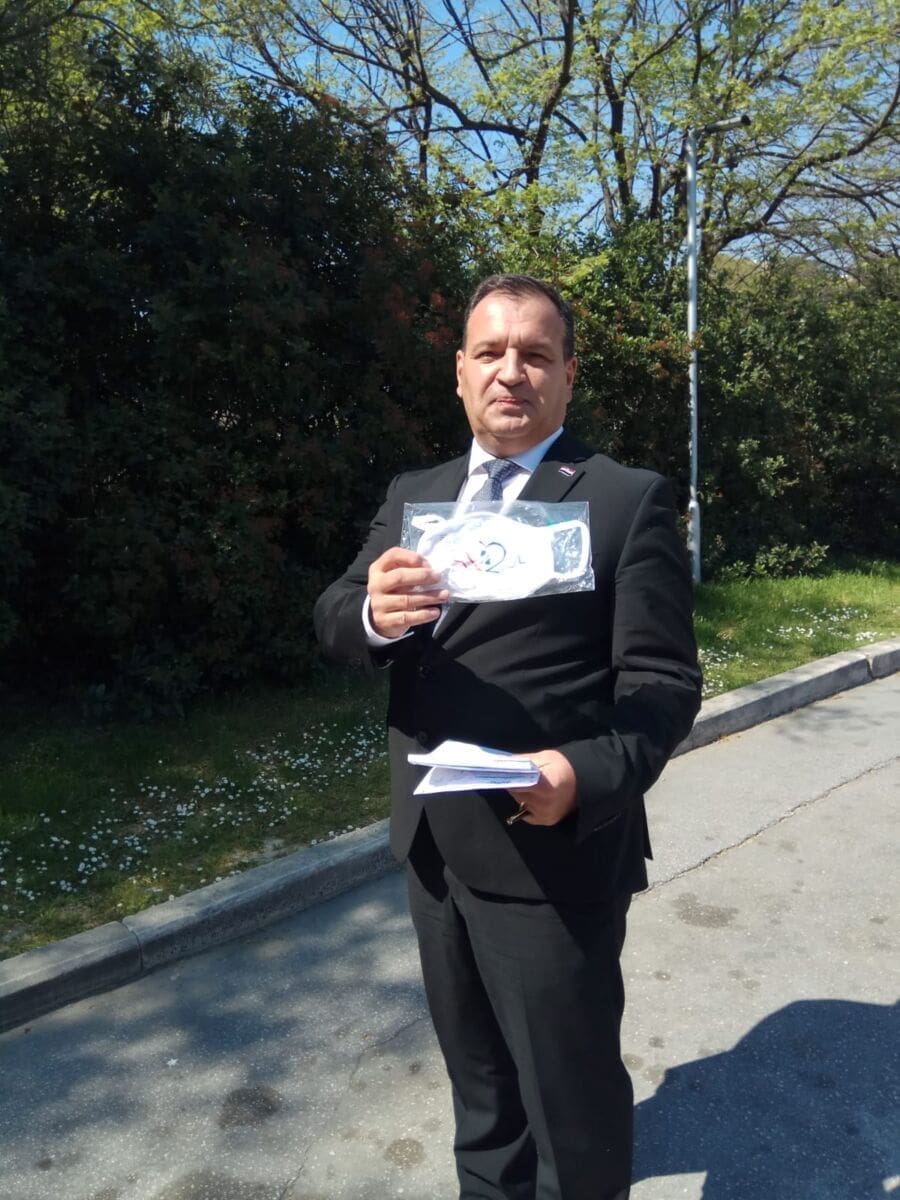 Internistica Daniela Marasović Krstulović poklonila je kolegi maskicu s Hajdukovim insignijama, kako bi mu ostala uspomena te podsjetnik na angažman Torcide u velikom logističkom zahvatu preseljenja dijela bolnice na Firule kako bi se na Križinama osigurao prostor za pacijente zaražene koronavirusom. Čak je i uobičajeno odmjerenom ministru Berošu “pobjegao” osmijeh zadovoljstva...