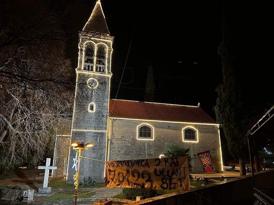 U Žrnovnici je danas ispred crkve osvanuo zanimljiv transparent.