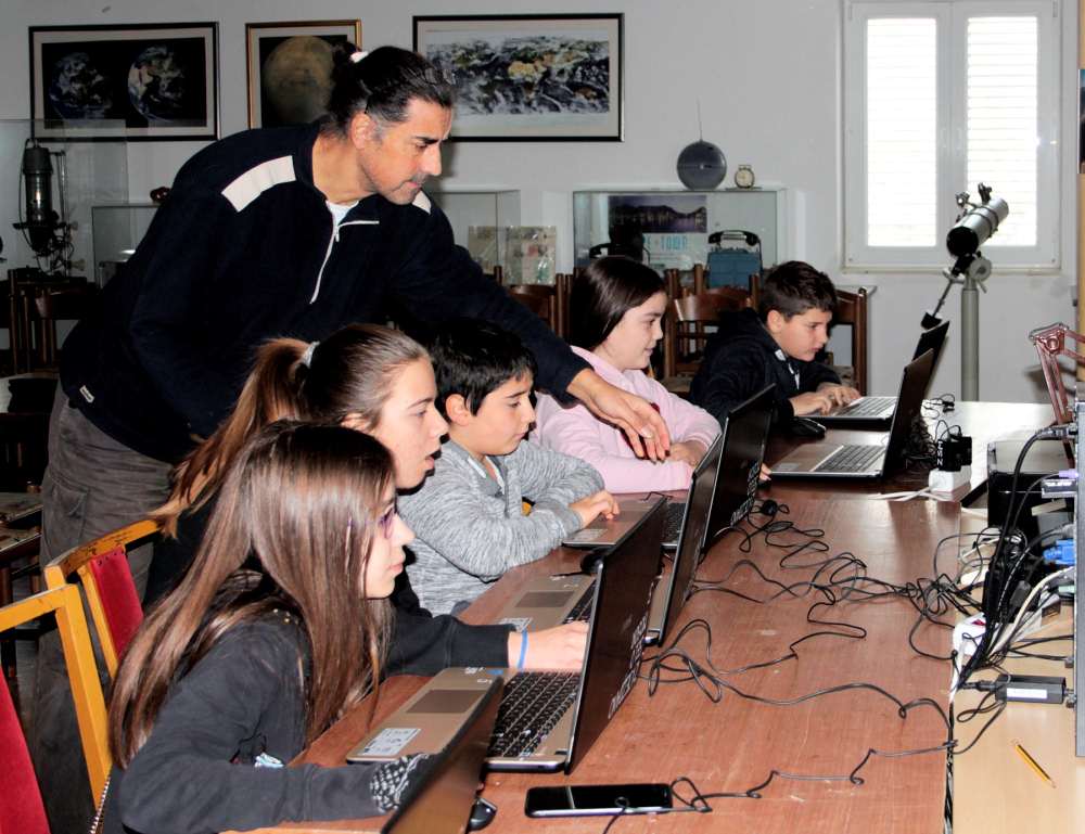 U skladu s vremenom u kojem živimo, u toj je radionici teleskop bio zamijenjen računalom: djeca su se naučila rukovati jednim od brojnih planetarijskih programa, kojim se može simulirati izgled neba za proizvoljno izabrano mjesto na Zemlji – ali i izvan nje – i za zadano vrijeme. Program o kojemu je ovdje riječ, omogućuje i postavljenje novih planeta i mjeseca u Sunčev sustav, što se djeci osobito dopalo.