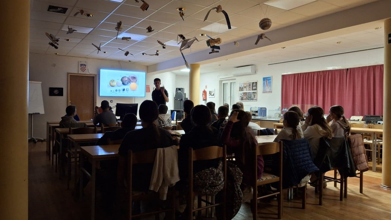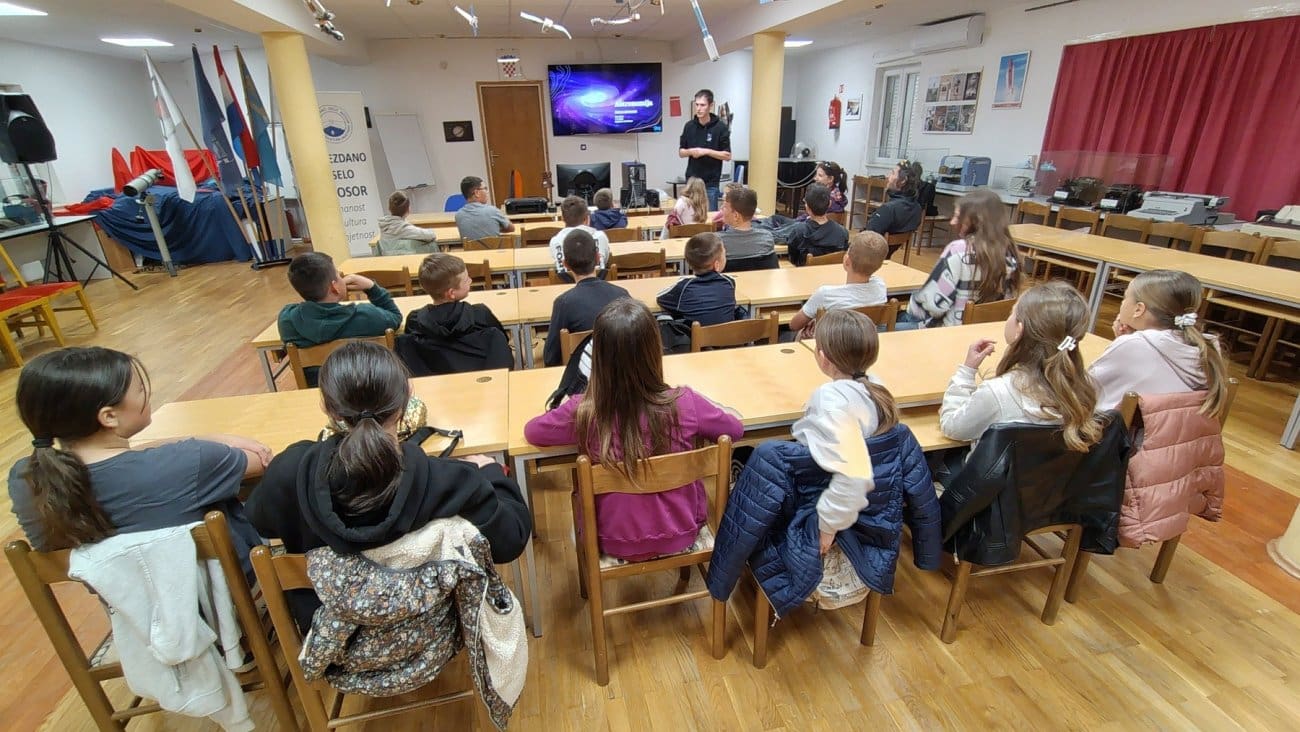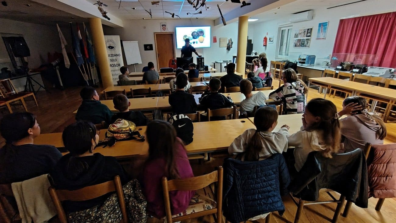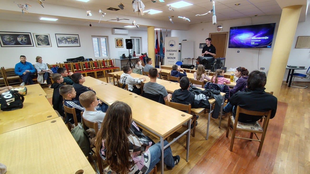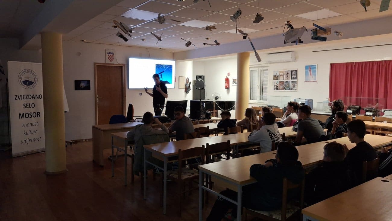 U sklopu ovogodišnje manifestacije GeoNight, koja se održava s ciljem popularizacije geografije i srodnih znanosti, u Zvjezdanom selu Mosor organizirano je predavanje i promatranje noćnog neba za učenike Osnovne škole Srinjine.