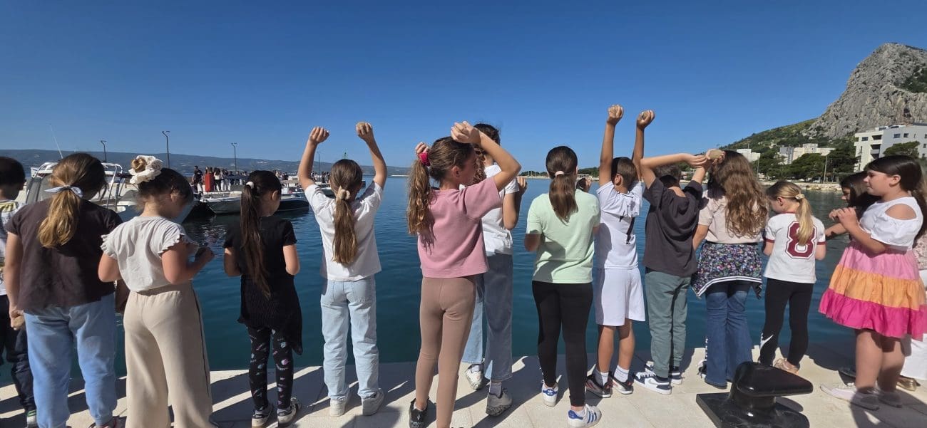 Učenici Osnovne škole Josip Pupačić iz Omiša okupili su se jučer u novoizgrađenoj luci u Omišu kako bi u more bacili oko 900 EM BIO kugli koje su izradili zajedno sa svojim učiteljima.
