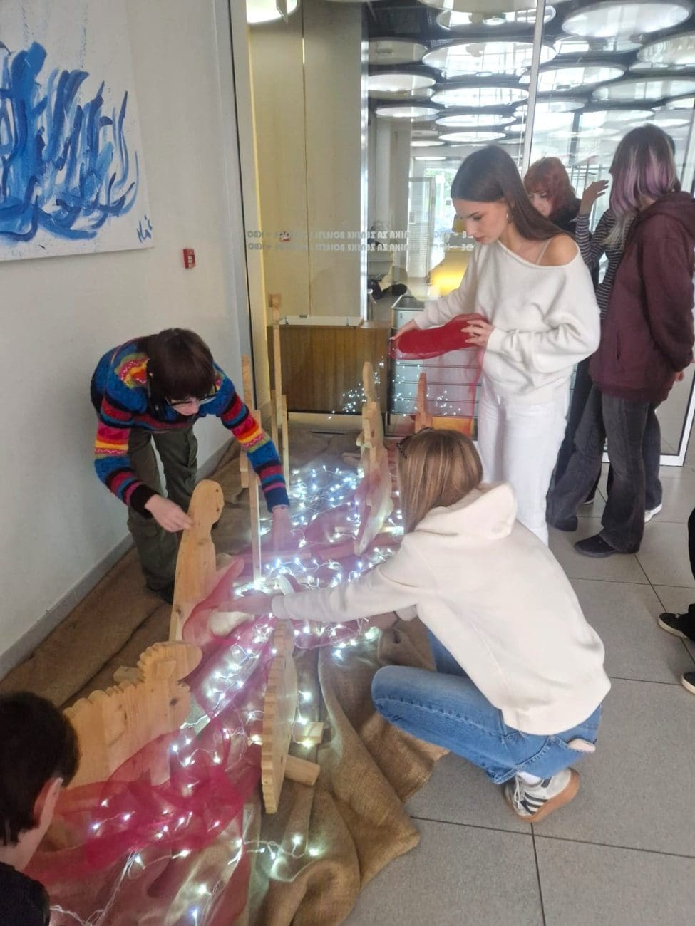Škola je poklonila dvoje jaslice iz fundusa škole čiji učenici svake godine naprave nove jaslice u novoj tehnici. Jaslice su u bolničke prostore postavljali učenici trećeg razreda, smjer aranžersko-scenografske dizajneri, uz mentorstvo nastavnice Tanje Ukas. „Na Kliniku za ženske bolesti postavili smo jaslice izrađene od drveta, a na centralni ulaz u stacionar na Firulama jaslice izrađene od scenografskog vitraja. Riječ je o jednoj posebnoj tehnici lijepljenja bojanog stakla“.