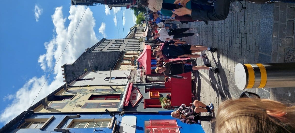 U razgledavanju Galwaya , lučkog grada na irskoj zapadnoj obali, učenici su osjetili čari grada koji je nadaleko poznat po svojim pubovima i tradicionalnoj irskoj glazbi. Šetnjom kroz Latinsku četvrt vidjeli su mnoštvo pubova, barova, restorana, galerija i trgovina Galwaya, a glazba uličnih izvođača i zabavljača dočarala je štimung irskih starih vremena, podsjetila na popularnu himnu irskih nogometnih navijača, glazbu poznatog irskog ansambla "Riverdance i njihove plesne korake .