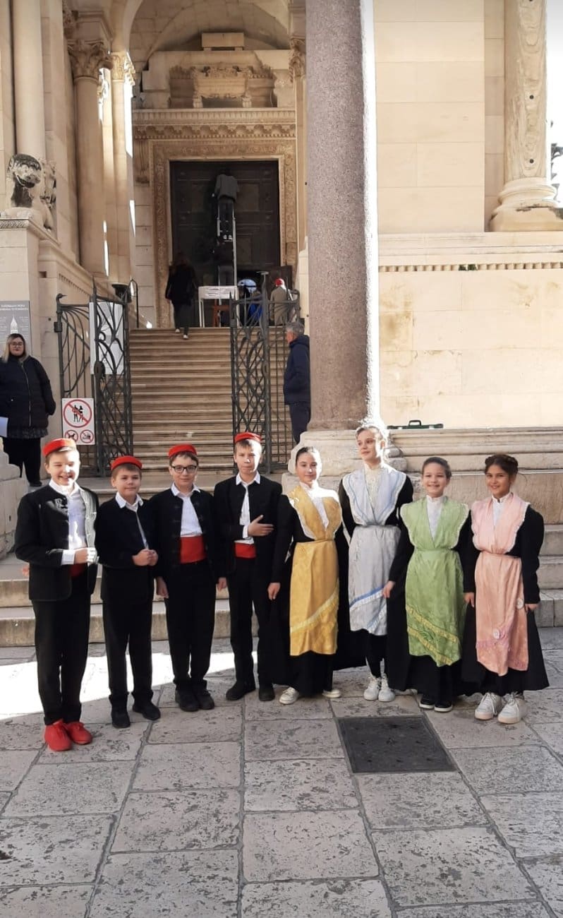 - Naši mali čuvari kulturne baštine nastupali su doista na brojnim mjestima, od Medicinskog do Filozofskog fakulteta, u Gradskoj knjižnici Marka Marulića, na Peristilu, Rivi, ispred zgrade HNK, ugostili su i novinarku i spisateljicu Tonku Alujević, a sve to na ponos njihovih roditelja i djelatnika škole. Učenicima je to prekrasna uspomena za cijeli život.