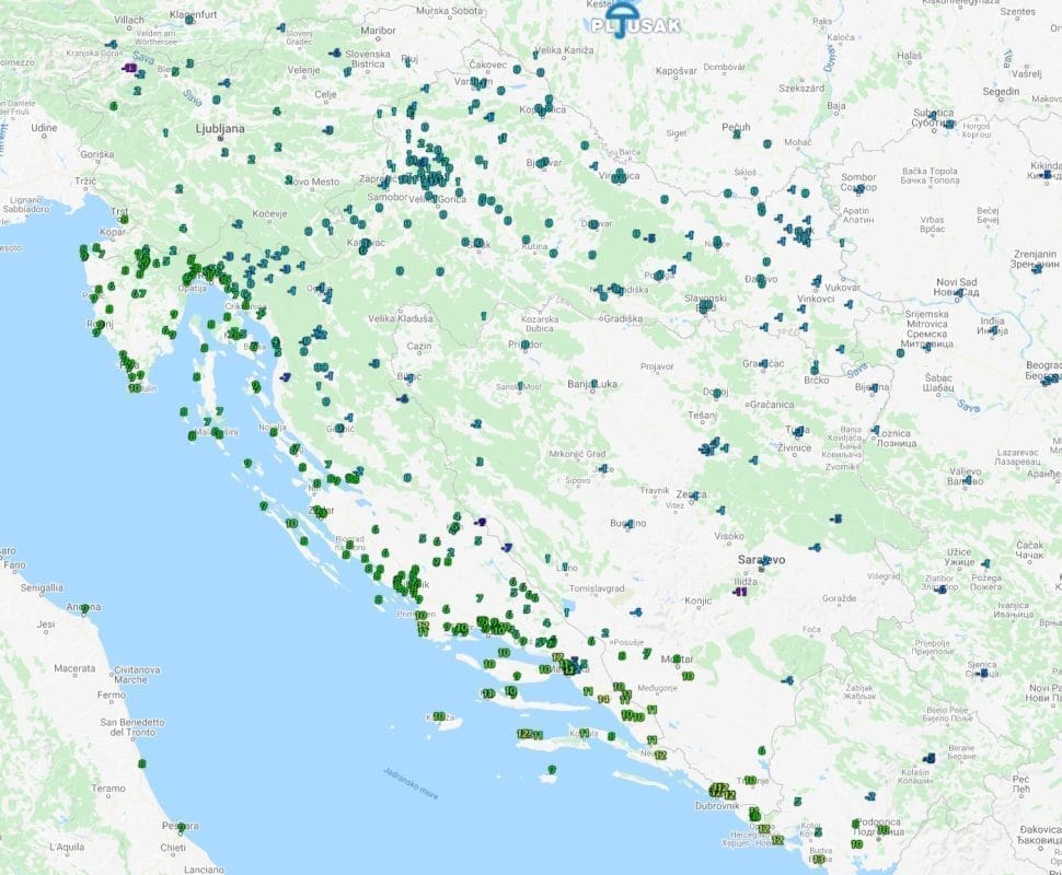 U Dalmaciji bura još nema udare preko 100 km/h, ali najjači udari u Makarskoj dosežu 90 km/h, u Splitu 76 km/h.