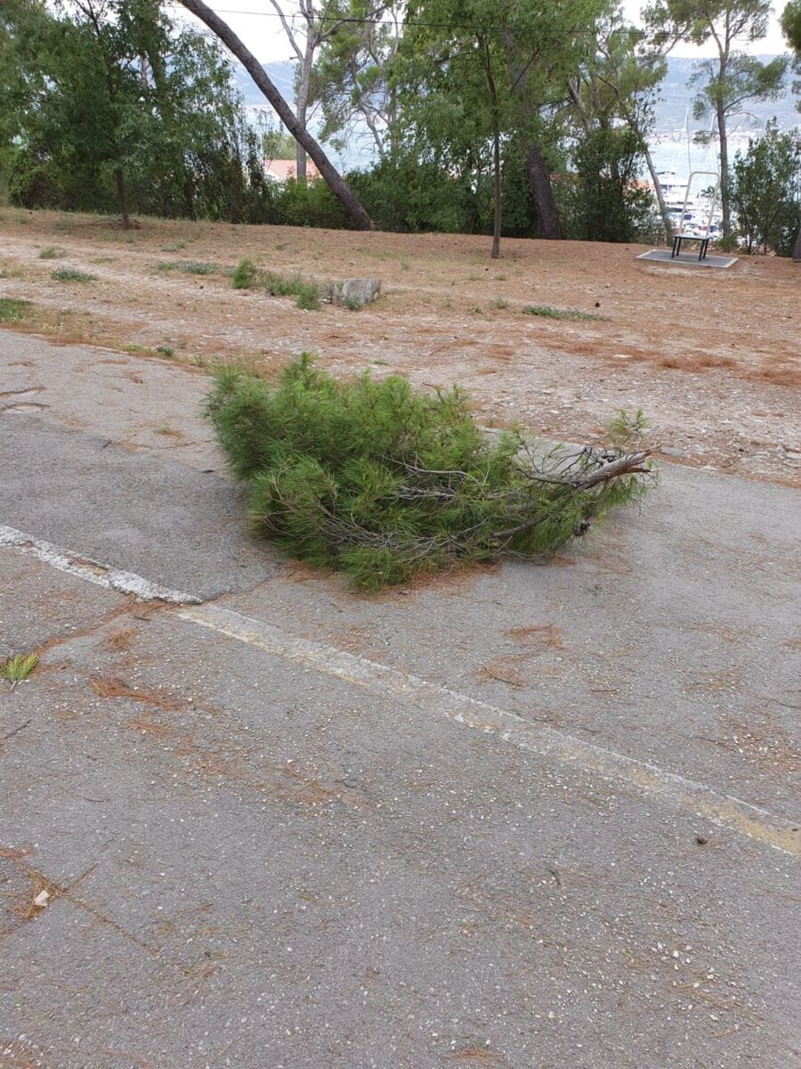 Oko 5:35 sati vatrogasci DVD Žrnovnica uklanjali su stablo koje je palo na Šinama, a svega pet minuta kasnije vatrogasci DVD Split uklonili su stablo s Puta sv. Mande.