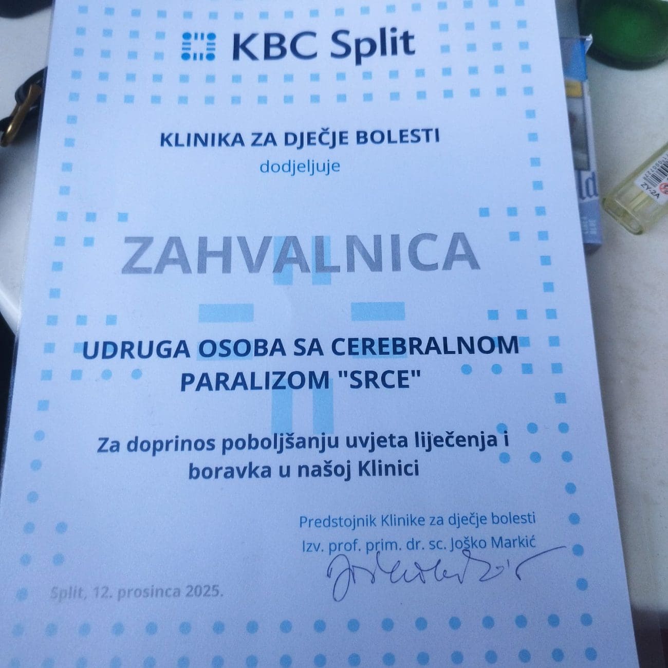"Hvala svim malim gledateljima, njihovim roditeljima i djelatnicima koji su pratili igrokaz. Slikovnice, slatki pokloni i bedževi dijelili su se na sve strane, a naši glumci s voditeljicom Snježanom Ćatović još jednom su pokazali koliko su složna skupina koja uči, raste i promovira slikovnicu kroz svoj igrokaz. U ime predstojnika Klinike za dječje bolesti, pedijatra Joška Markića, zahvalnicu je predala pročelnica Zavoda za intenzivnu pedijatriju KBC-a Split, pedijatrica Branka Polić. Zahvale upućujemo i našoj asistentici Maji Cvitanović te volonterkama crkve sv. Filipa Nerija: Maji Buljubašić i Ivani Mitar. Počašćeni i sretni ovim susretom te, iznad svega, divnom atmosferom, nastavljamo radost koju nosimo u sebi dijeliti s drugima", zaključili su iz udruge Srce iz Splita.