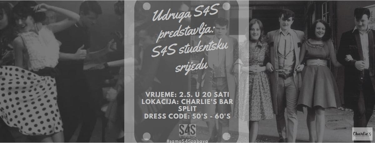 S4S vremeplov ove srijede vraća vas u 50-e i 60-e uz odličnu muziku i modu toga doba, akcijske cijene pića i nezaboravan provod u Charlie's Bar u splitskom Getu.