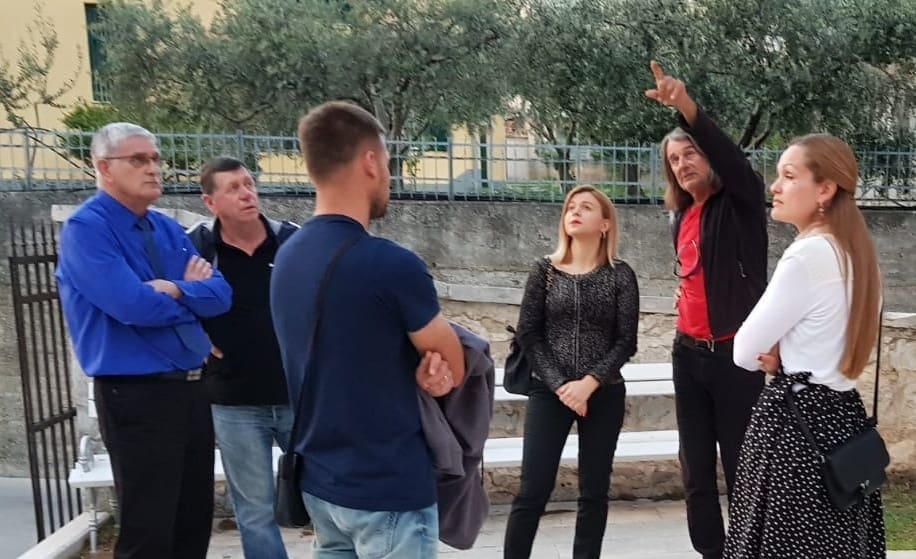 Predsjednica Žrvnja goste je provela kroz mjesto i pokazala nekoliko znamenitosti, uključujući mjesnu crkvu Uznesenja BDM u centru mjesta na čijem pročelju stoji iznimno vrijedan reljef koji je zadnjih godina postao predmet interesa brojnih znanstvenika i povjesničara. Članovi Žrvnja gostima su pokazali šetnicu uz rijeku Žrnovnicu, grob legendarnog Miljenka Smoje, povijesnu Antoničinu mlinicu i njen prelijepi okoliš.