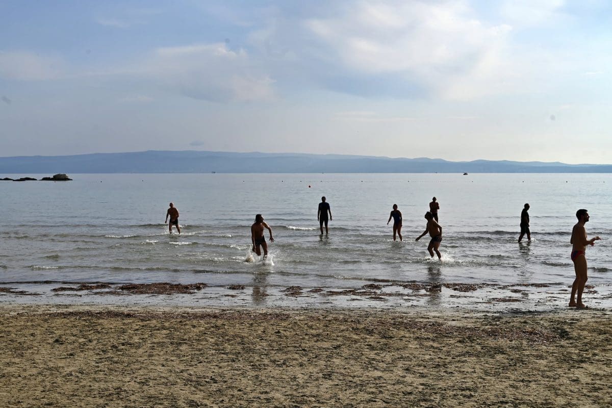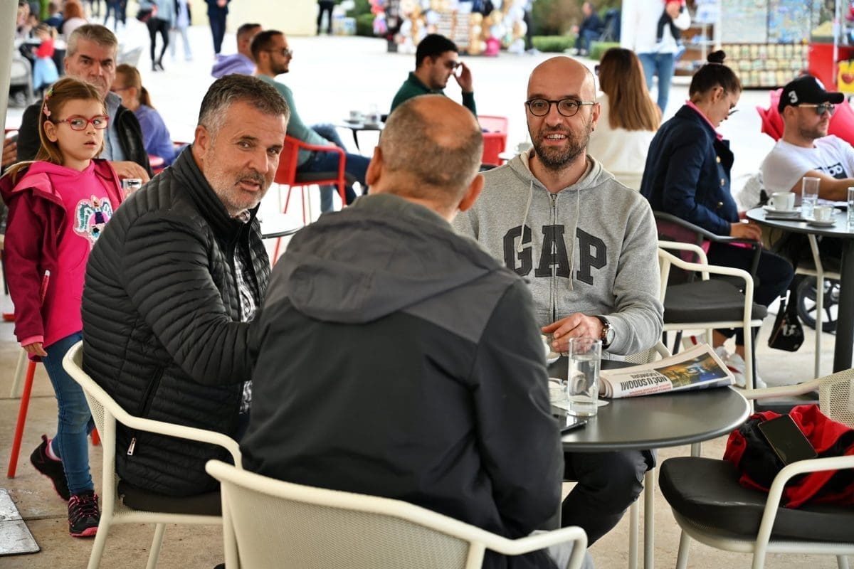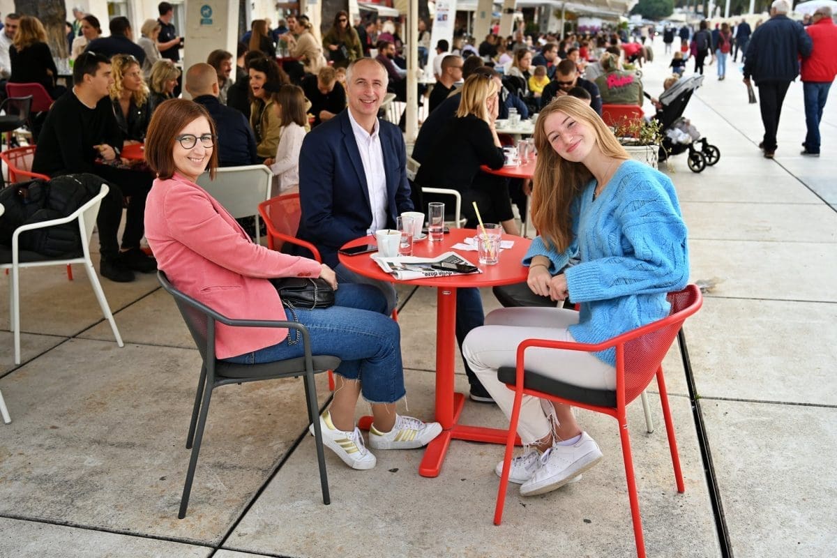 Na Rivi su tako kavu popili Marijana i Ivica Puljak u društvu kćeri. Dok je gradonačelnik izabrao kafić, dogradonačelnik je izabrao Bačvice i svoj omiljeni hobi - picigin. Naime, Bojan Ivošević zaigrao je picigin u plićaku najpopularnije splitske plaže, a Bače su u nedjelju bile krcate.