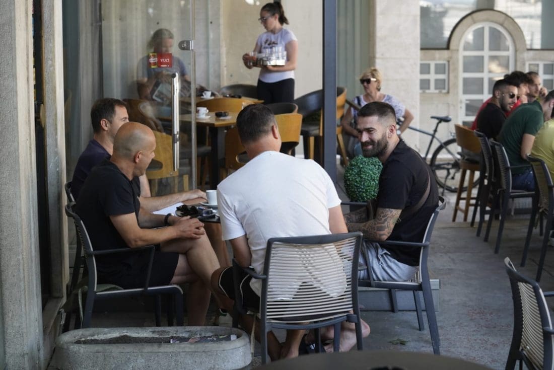 Livaja je s nekoliko prijatelja ispijao kavu i bacio "ćakulu", a kako se činilo, tema za razgovor i smijeha im nije nedostajalo.