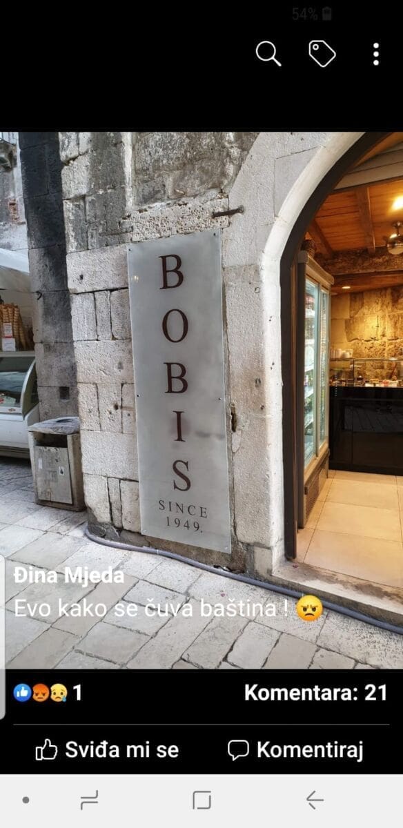 Brzom intervencijom komunalnih redara Grada Splita uklonjena je reklama koju je Bobis jučer postavio na ulazu u svoje prodajno mjesto.