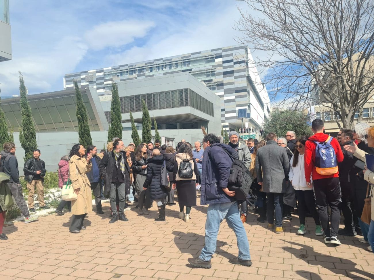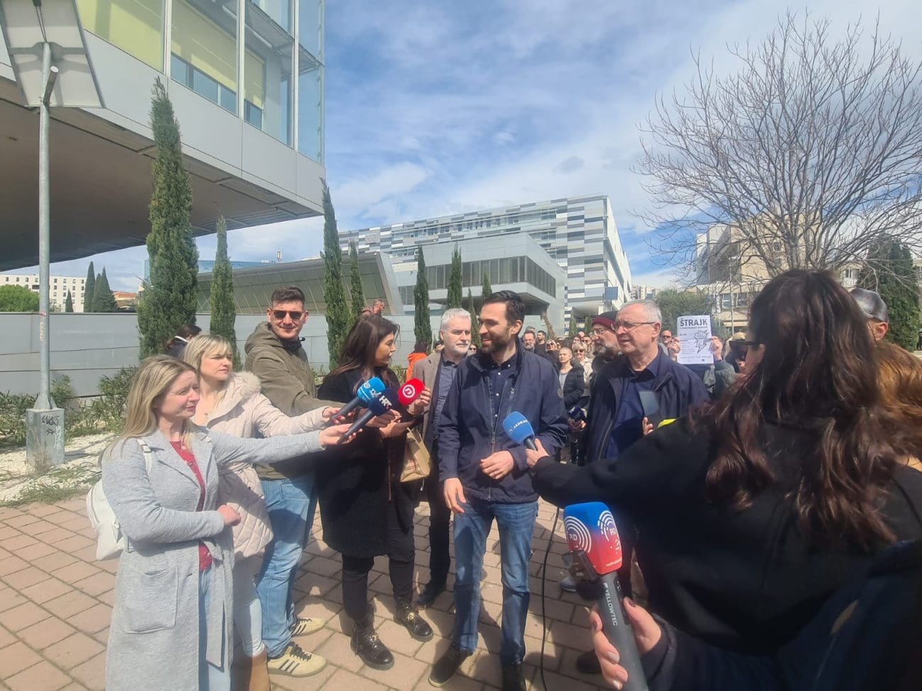"Štrajk je uspio! Dalmacija je još jednom pokazala šta misli o politici Vlade RH, o ponižavanju i obezvrjeđivanju rada prosvjetara, znanstvenika, sveučilišnih profesora. Trudili su se obeshrabriti nas, trudili su se zastrašiti nas, ali nisu uspjeli. Mi nismo ovdje danas jer smo protiv Vlade, ali u ovom trenutku je Vlada protiv nas. U ovom trenutku je Vlada protiv svojih vlastitih zaposlenika. Splitski dišpet, dalmatinski dišpet je pokazao svoje. Mi rastemo, nećemo odustati toliko dugo dok god ovi ljudi iza nas imaju volju borit se, imaju volju izložit se za svoju poziciju, za poziciju svojih kolega i za bolju budućnost ove zemlje", kazao je na početku Matija Kroflin iz Nezavisnog sindikata znanosti i visokog obrazovanja.