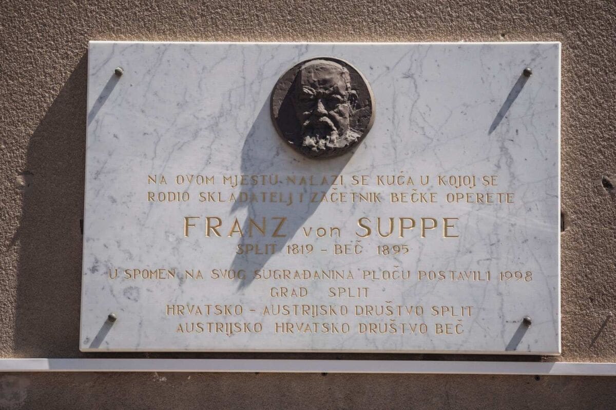 Grad Split je kroz svoju bogatu višestoljetnu povijest iznjedrio svu silu znamenitih ličnosti koji su ostavili trag u domenama znanosti, sporta, kulture itd., na globalnoj razini. Jedan od takvih znamenitih likova je i stanoviti Franz von Suppe. Za njega se dan-danas baš i ne zna, jer se čovjek bavio djelatnošću čija je popularnost drastično opala dolaskom rock'n'rolla – bio je, naime, skladatelj. Ipak, u svoje vrijeme bio je svjetski poznat i izuzetno cijenjen, nešto kao što su danas Hauser i onaj drugi.