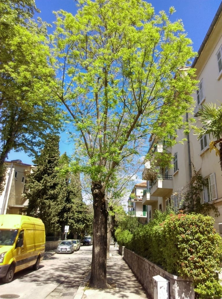 Nije sve crno u našem gradu. Ima nešto i žutih nijansi, zelenih, crvenih i onih između. Velite Viška ulica? Pa da, to je ona koja vodi prema Bačama, to je ona koju najčešće brzinom munje prošišaju automobili, to je ona koja vodi prema ljetnom kinu Bačvice, prema teniskim terenima, to je ona…To je ona koju se treba pogledati! Prelipa Viška ulica u kojoj treba zastati i svaku kuću pogledati. To je ulica – đardin! Ne samo radi fantastičnog drvoreda, već i radi prelipe arhitekture i vizure, cvića po balkonima, na prozorima, sređenim vrtovima, fasadama, pomno odabranim škurama zelene boje. I po ljudskoj mjeri odabranoj visini kuća.